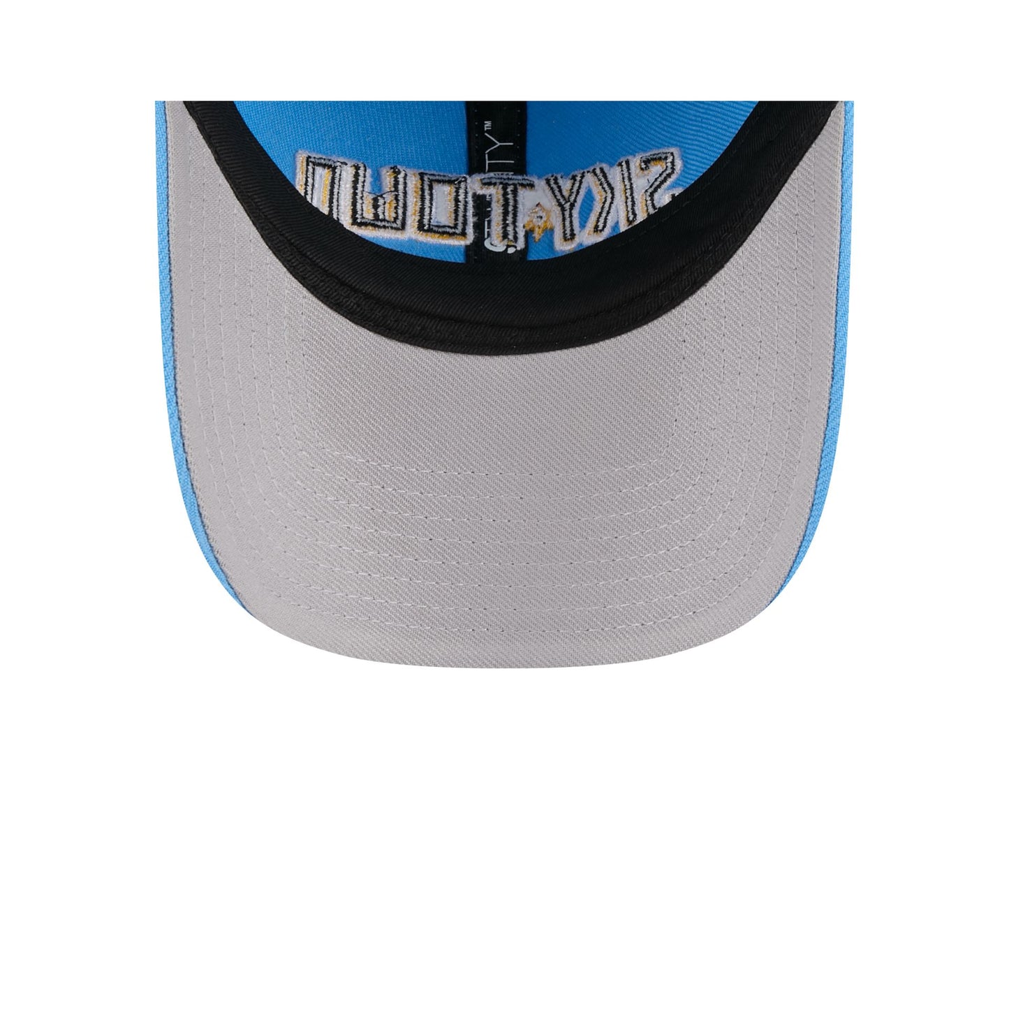 The Chicago Sky Rebel Series 9TWENTY Adjustable Cap features an embroidered Sky wordmark at the front panels with a team logo at the right-wear side, an adjustable D-Ring closure at the rear, and a gray undervisor.
