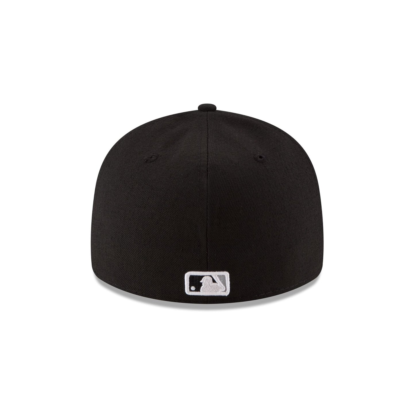 The Chicago White Sox 125th Anniversary Low Profile 59FIFTY Fitted Cap features an embroidered White Sox logo at the front panels with a matching MLB Batterman logo at the rear. Additional details include a 125th Anniversary patch at the right-wear side and a black undervisor.