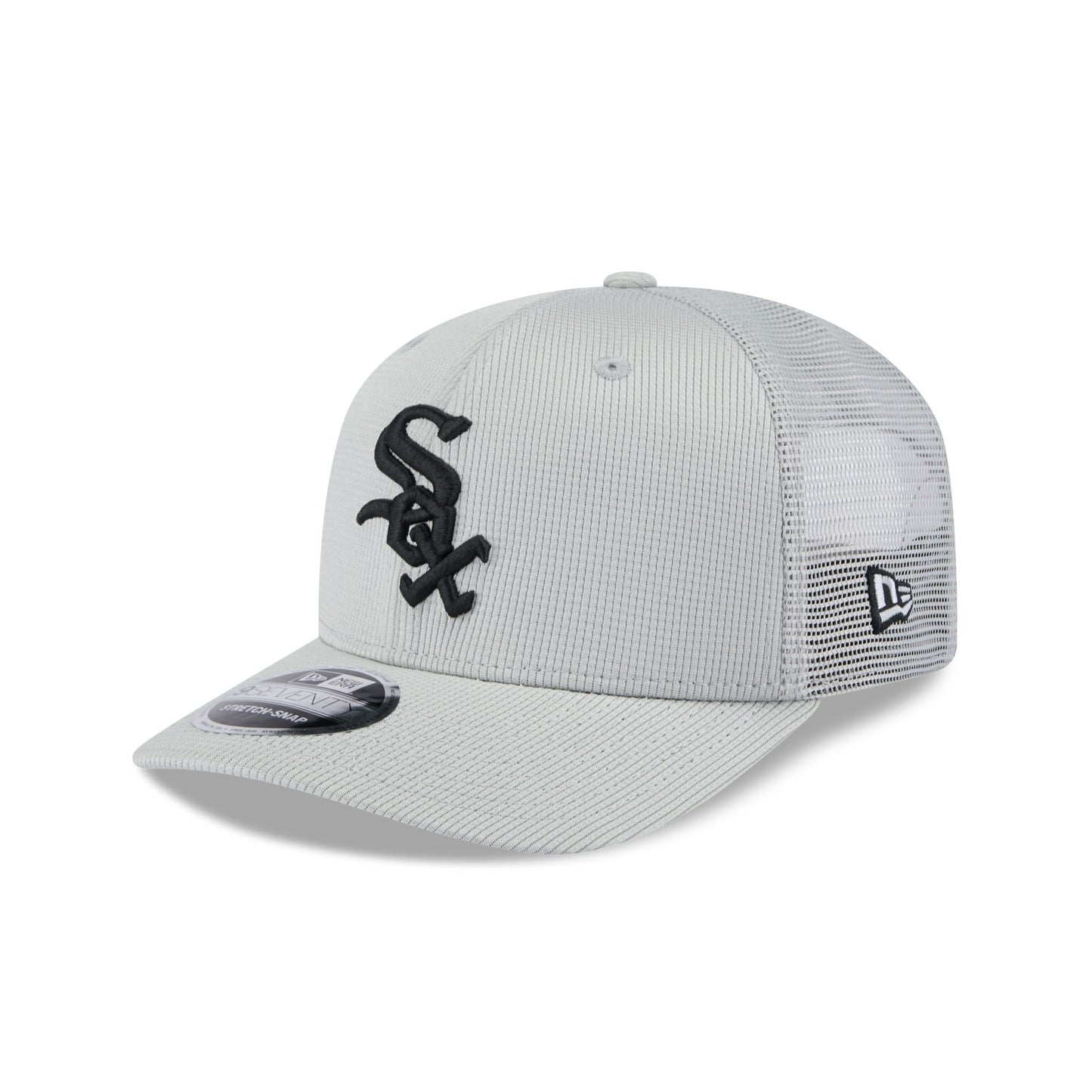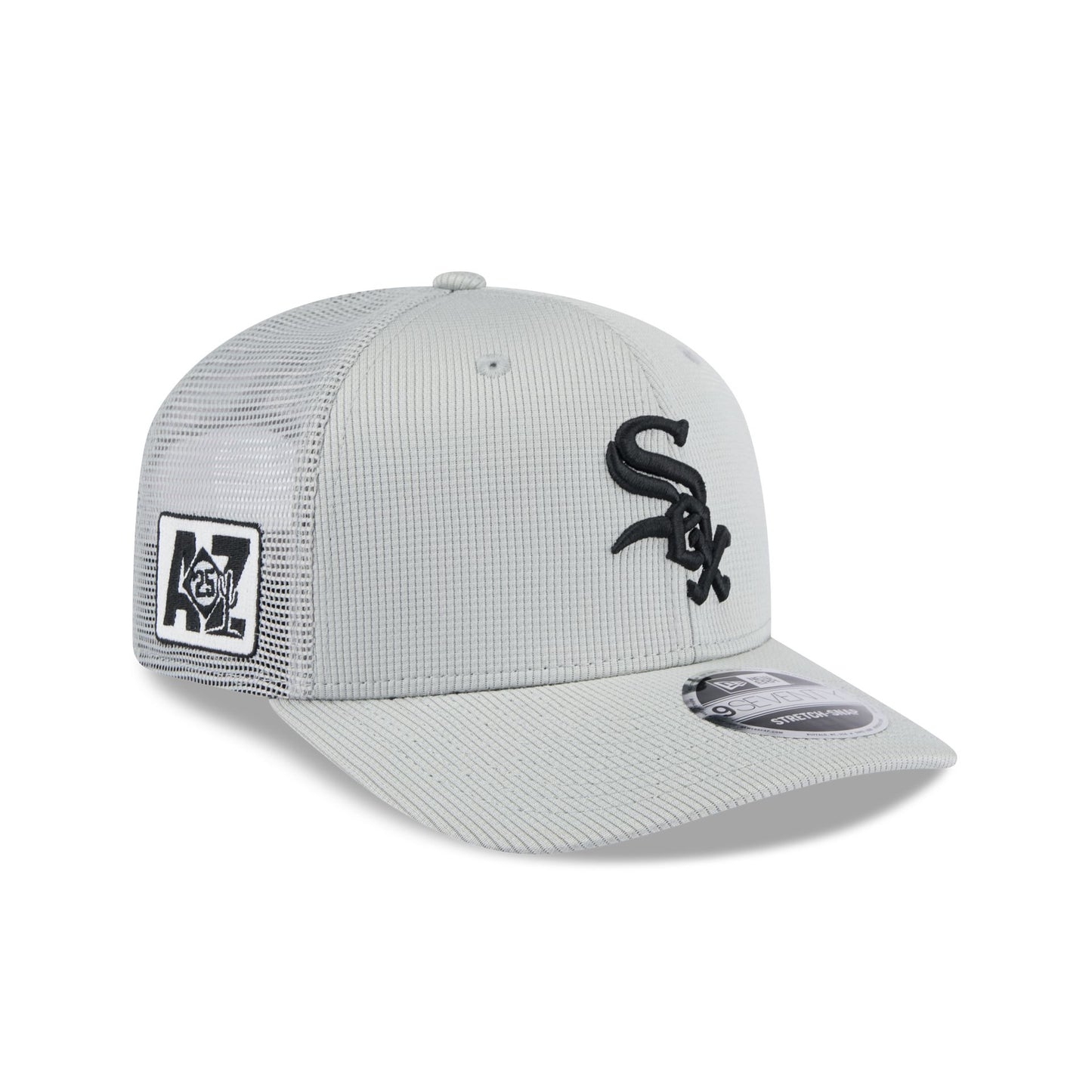 The Chicago White Sox 2025 Spring Training 9SEVENTY Trucker Cap features an embroidered White Sox logo at the front panels with a snapback closure at the rear. Additional details include a pivot knit fabrication with a 2025 Spring Training patch at the right-wear side and a black undervisor.