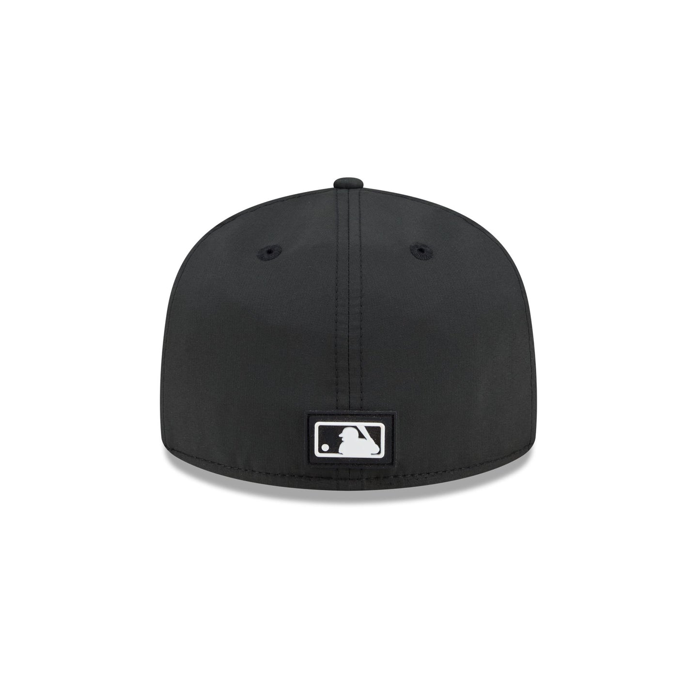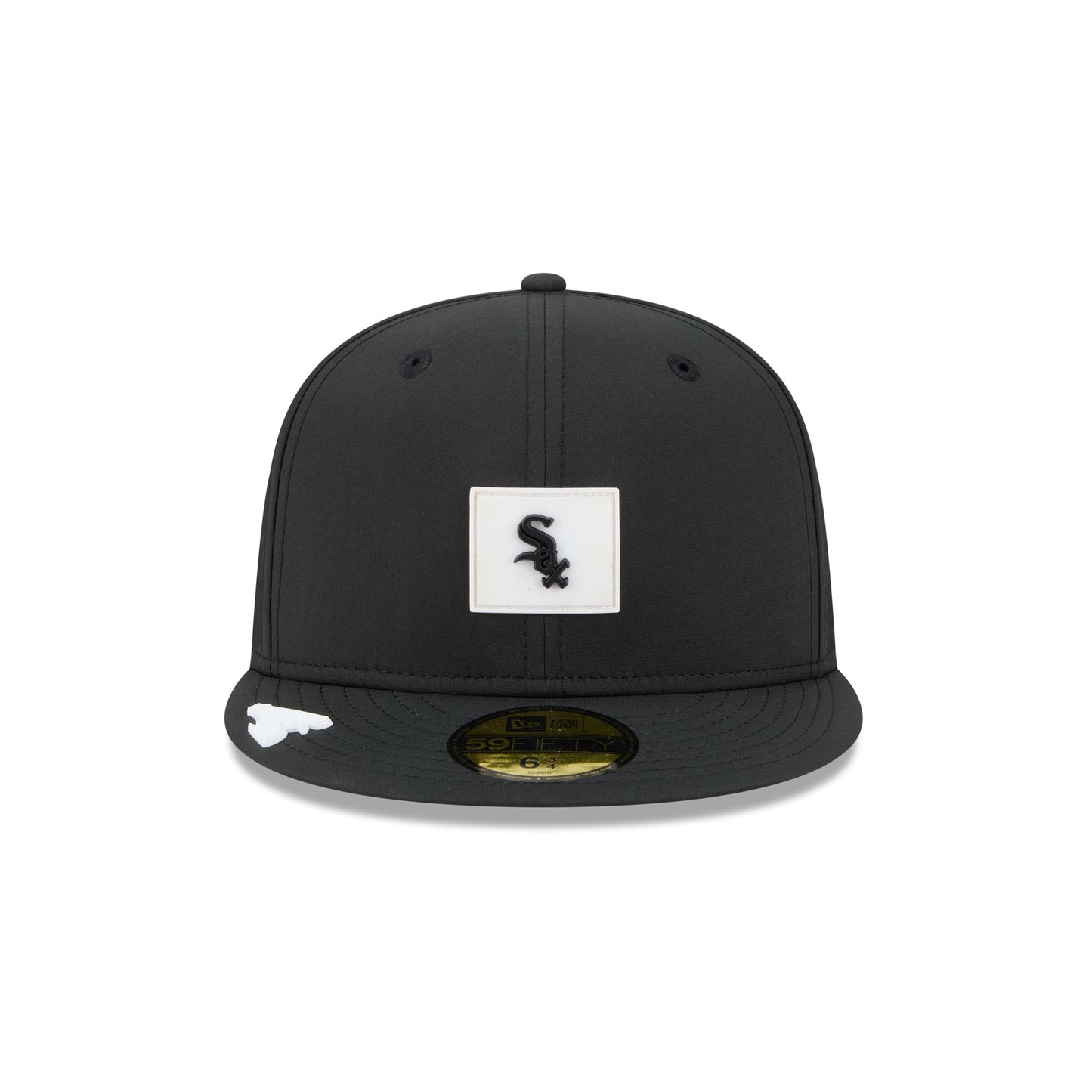 The Chicago White Sox 2026 Clubhouse 59FIFTY Fitted Cap features a sewn-down silicone White Sox logo patch at the front panels with a water-repellent quill tech fabrication throughout. Additional details include a silicone MLB Batterman logo patch at the rear and a gray undervisor. The visor is accented with a silicone transfer team patch.