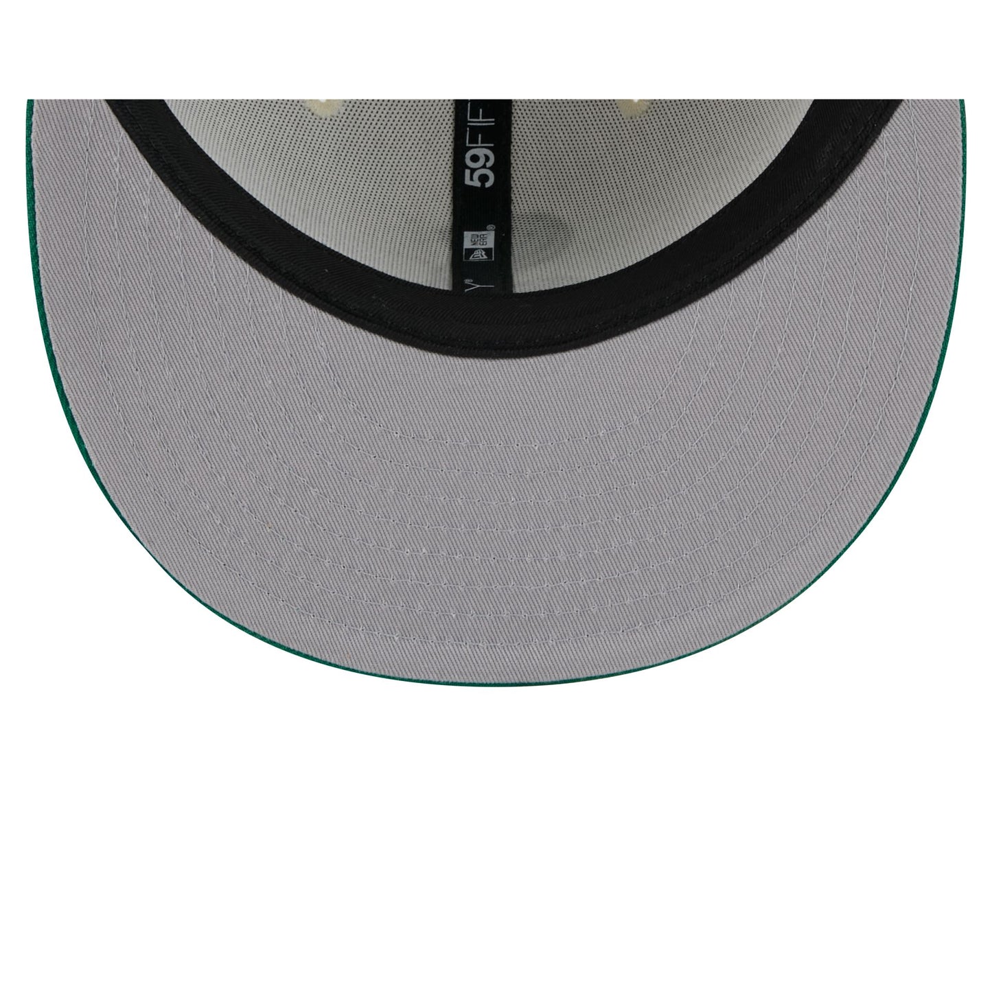 The Chicago White Sox Beaded Linen 59FIFTY Fitted Cap features a red, white and green beaded White Sox logo at the front panels with a matching MLB Batterman logo at the rear. Additional details include an embroidered team wordmark at the right-wear side with a green visor and a gray undervisor.