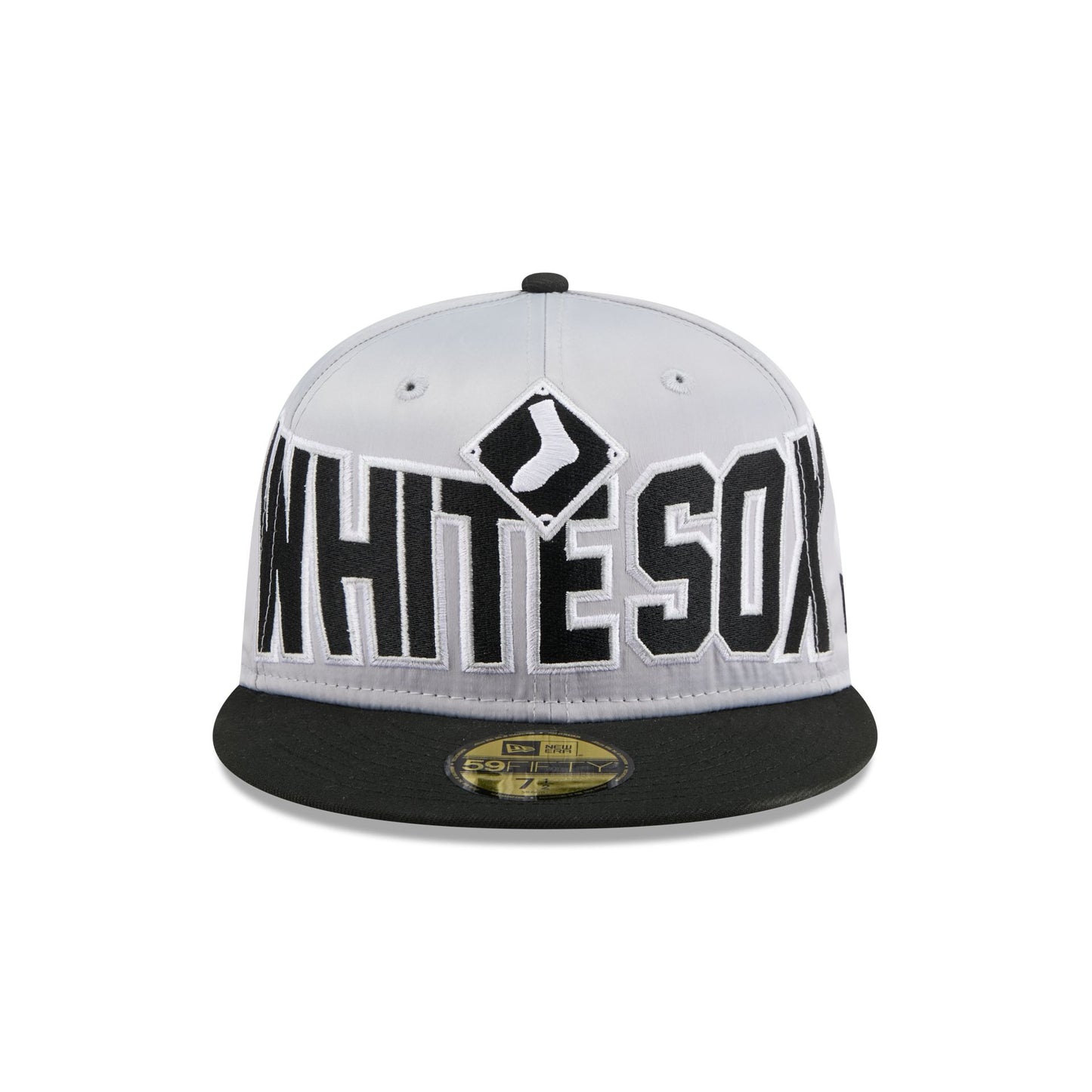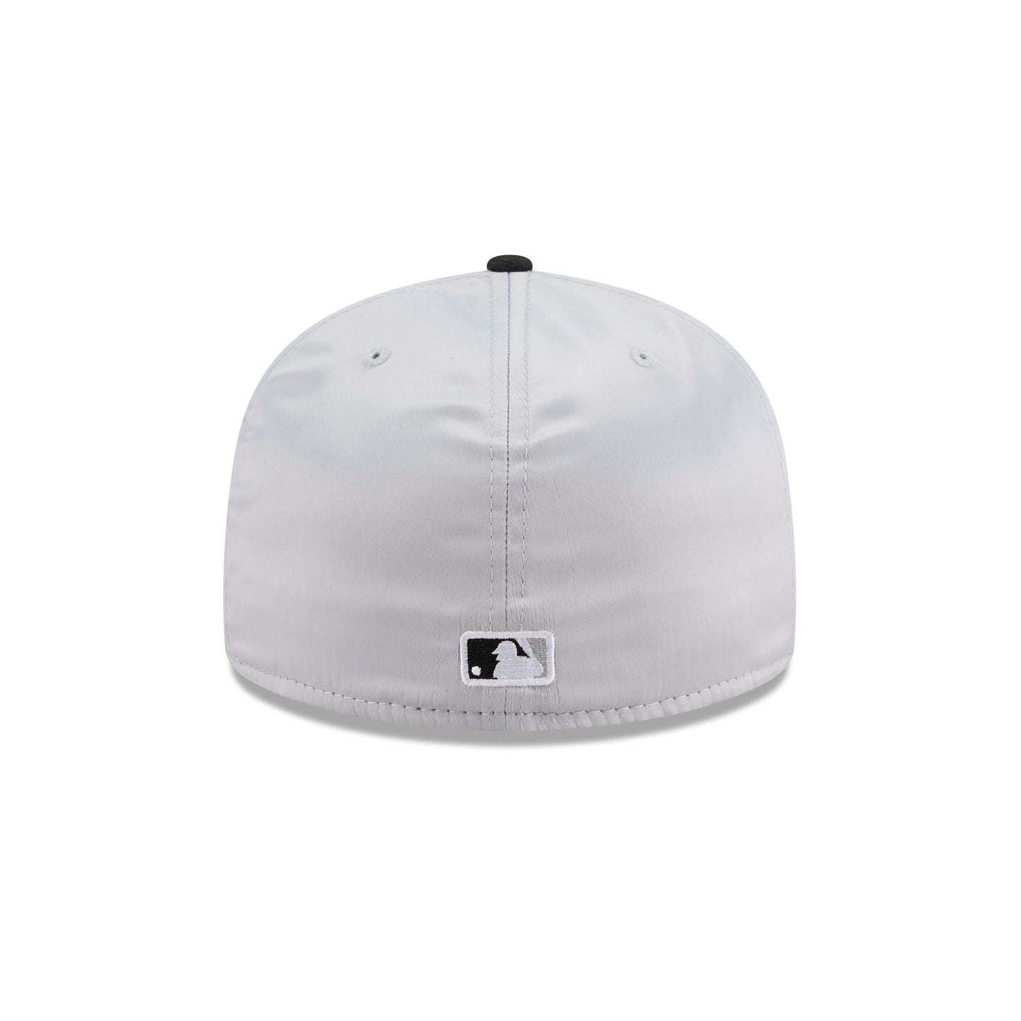 The Chicago White Sox Bold Satin 59FIFTY Fitted Cap features an embroidered satin White Sox Historic graphic at the front panels with a satin fabrication throughout. Additional details include a matching MLB Batterman logo at the rear and a gray undervisor.