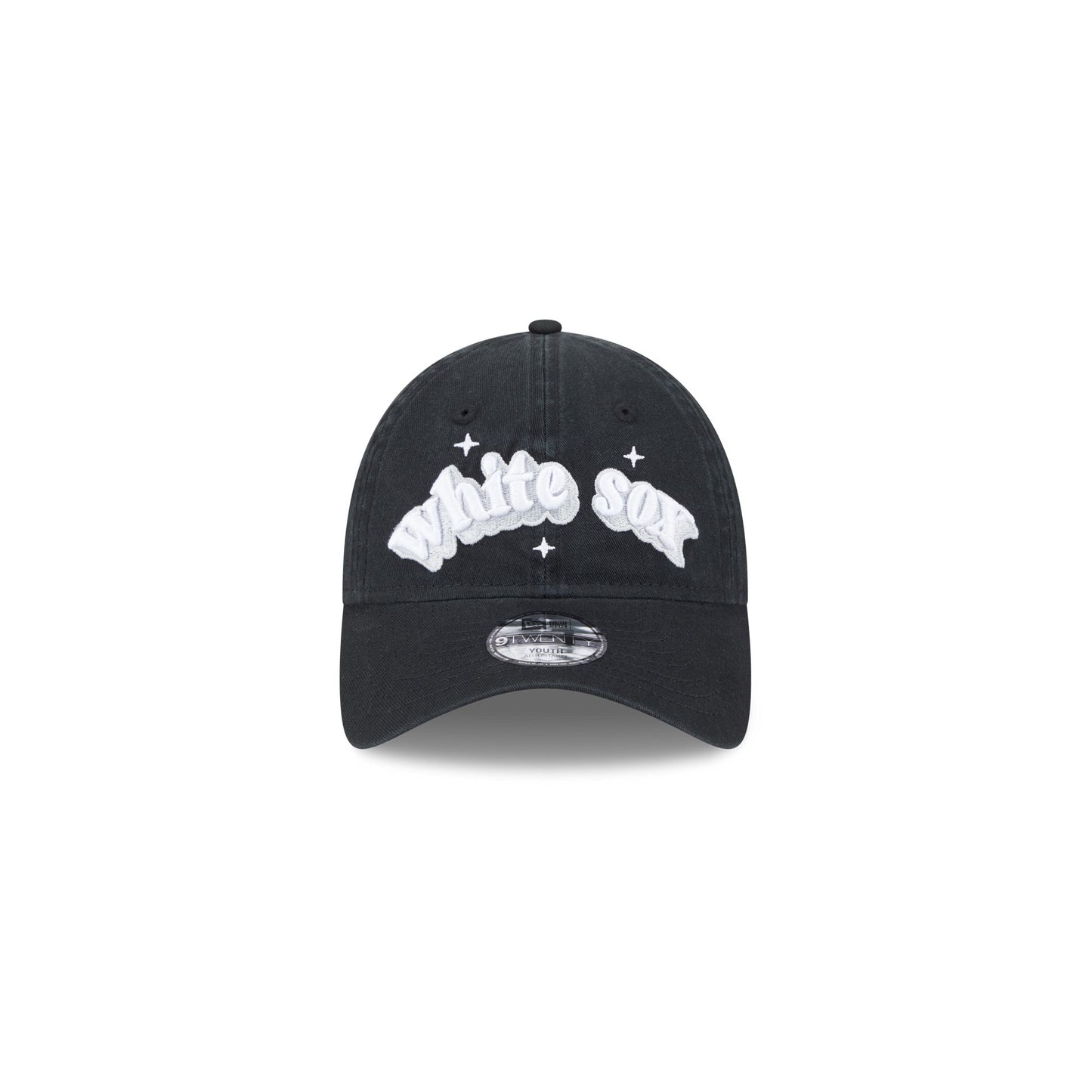 The Chicago White Sox Cheer Kids 9TWENTY Adjustable Cap features an embroidered Chicago White Sox sparkle wordmark at the front panels. Additional details include a logo at the right-wear side and an adjustable D-Ring closure at the rear and a gray undervisor.
