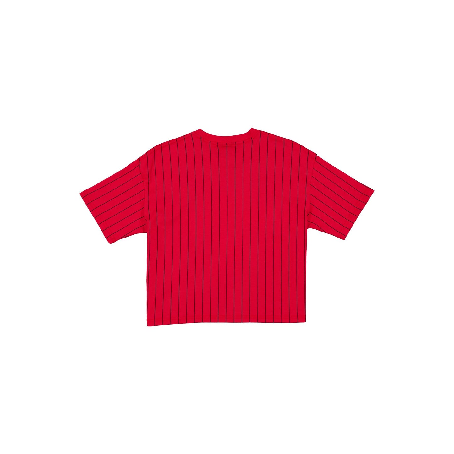 The Chicago White Sox City Connect Women's Pinstripe T-Shirt features a screen-printed White Sox wordmark and logo at the front with a New Era jock tag at the left hip.