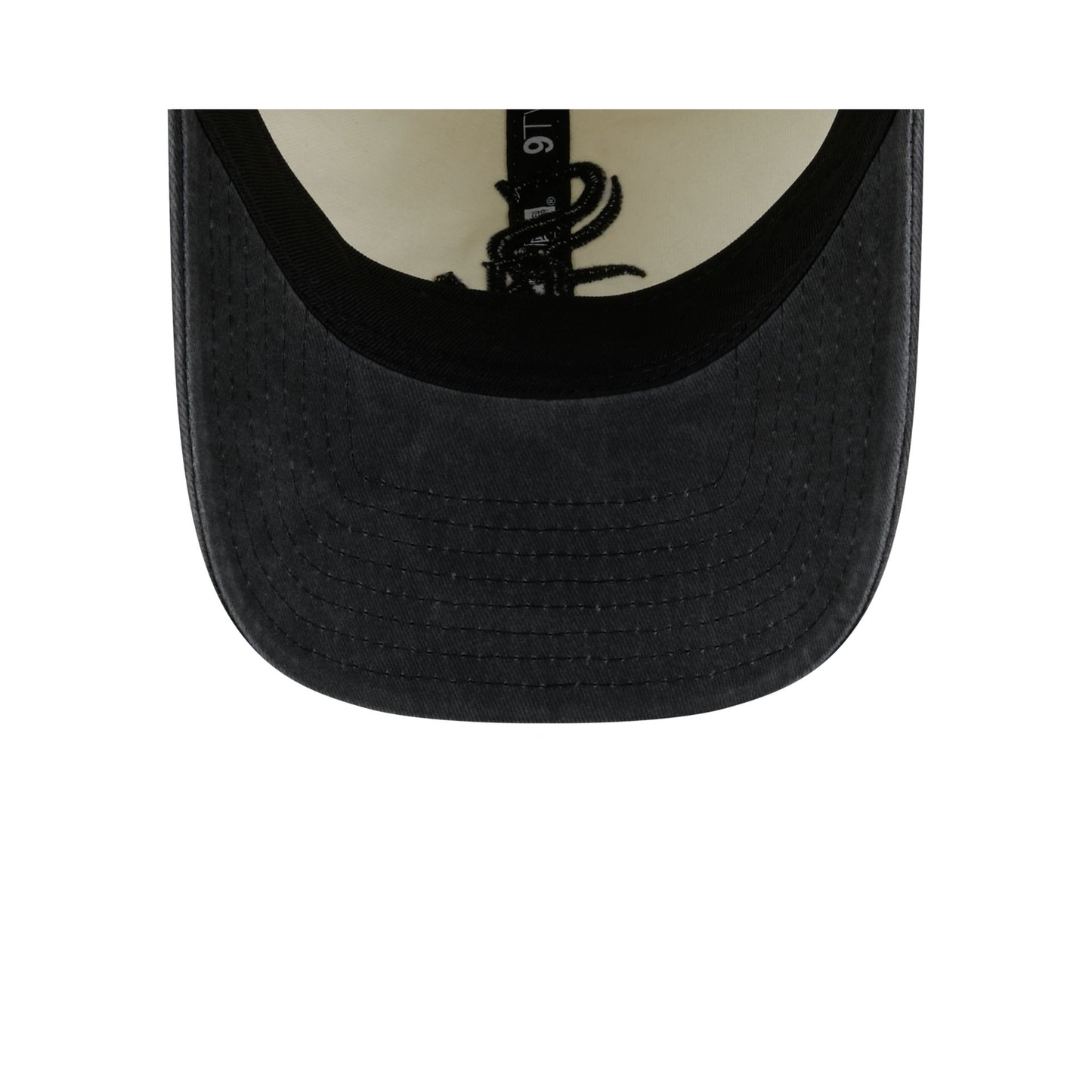 The Chicago White Sox Classic Sidescript 9TWENTY Adjustable Cap features an embroidered White Sox logo at the front panels with a matching team wordmark at the right-wear side. Additional details include eyelets throughout the cap and an adjustable D-Ring closure at the rear.