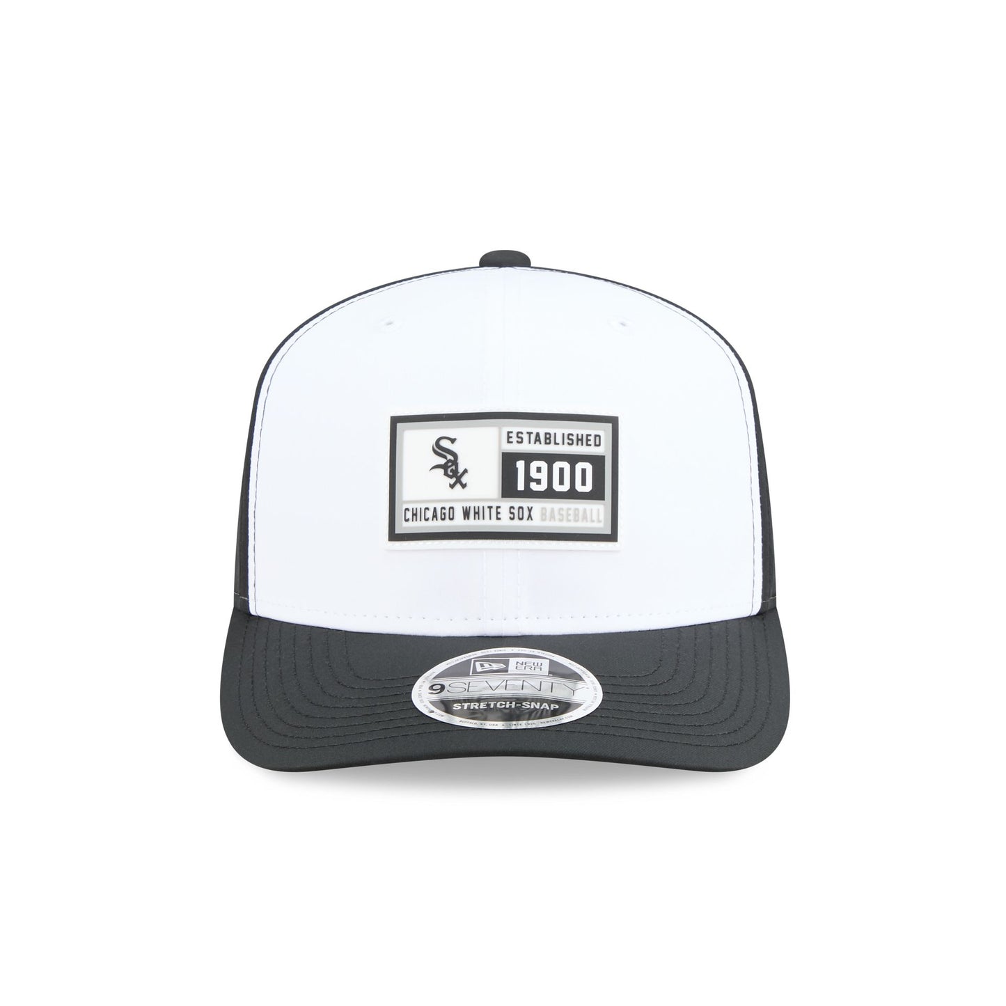 The Chicago White Sox Est. Patch 9SEVENTY Stretch-Snap features a woven silicone White Sox establishment patch at the front panels with a slant-snap closure at a performance mesh rear and a gray undervisor.