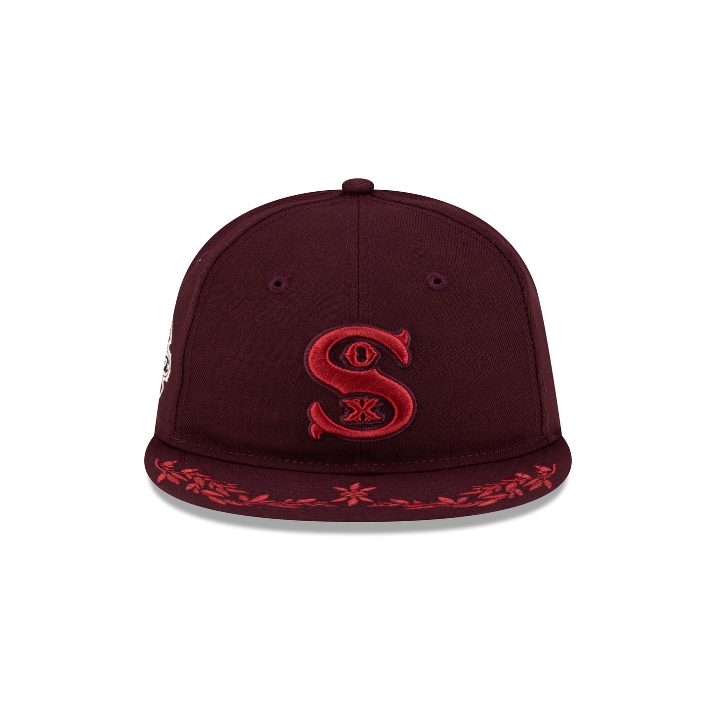 The Chicago White Sox Flourishes Retro Crown 9FIFTY Snapback features a monochromatic embroidered White Sox logo at the front panels with an adjustable snapback closure at the rear. Additional details include a 1917 World Series team patch at the right-wear side with flourish details at the visor and a maroon undervisor.