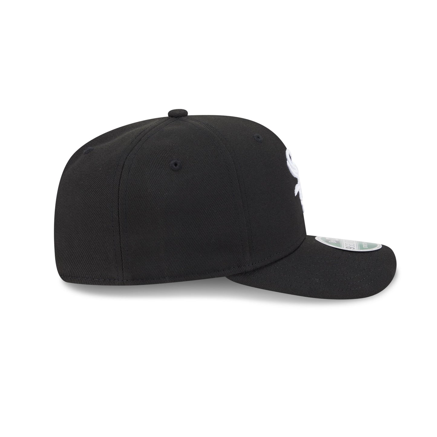 The Chicago White Sox Game 9SEVENTY Stretch-Snap features an embroidered White Sox logo at the front panels with a matching MLB Batterman logo above a snapback closure at the rear and a black undervisor.
