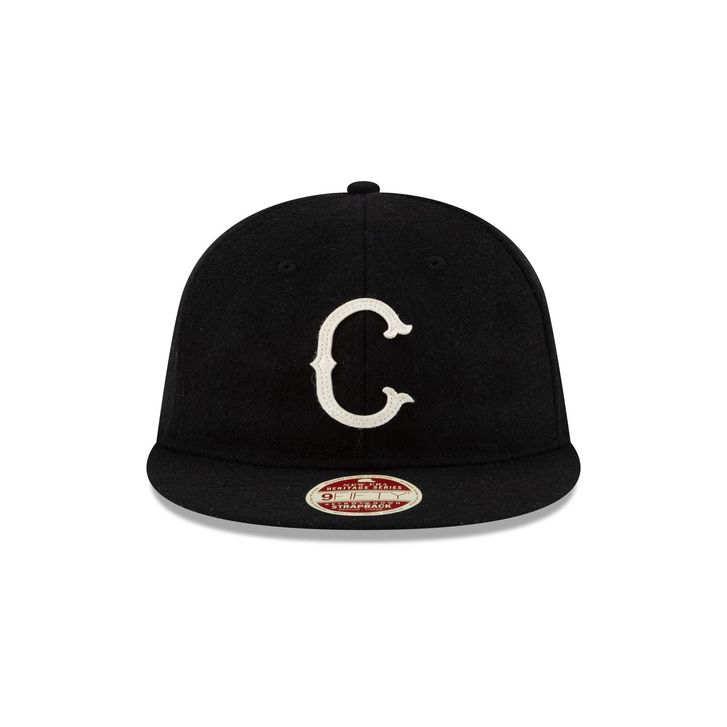 The Chicago White Sox Heritage Series Retro Crown 9FIFTY Strapback Cap features an embroidered White Sox Cooperstown logo at the front panels with an adjustable D-Ring closure at the rear and a green undervisor.