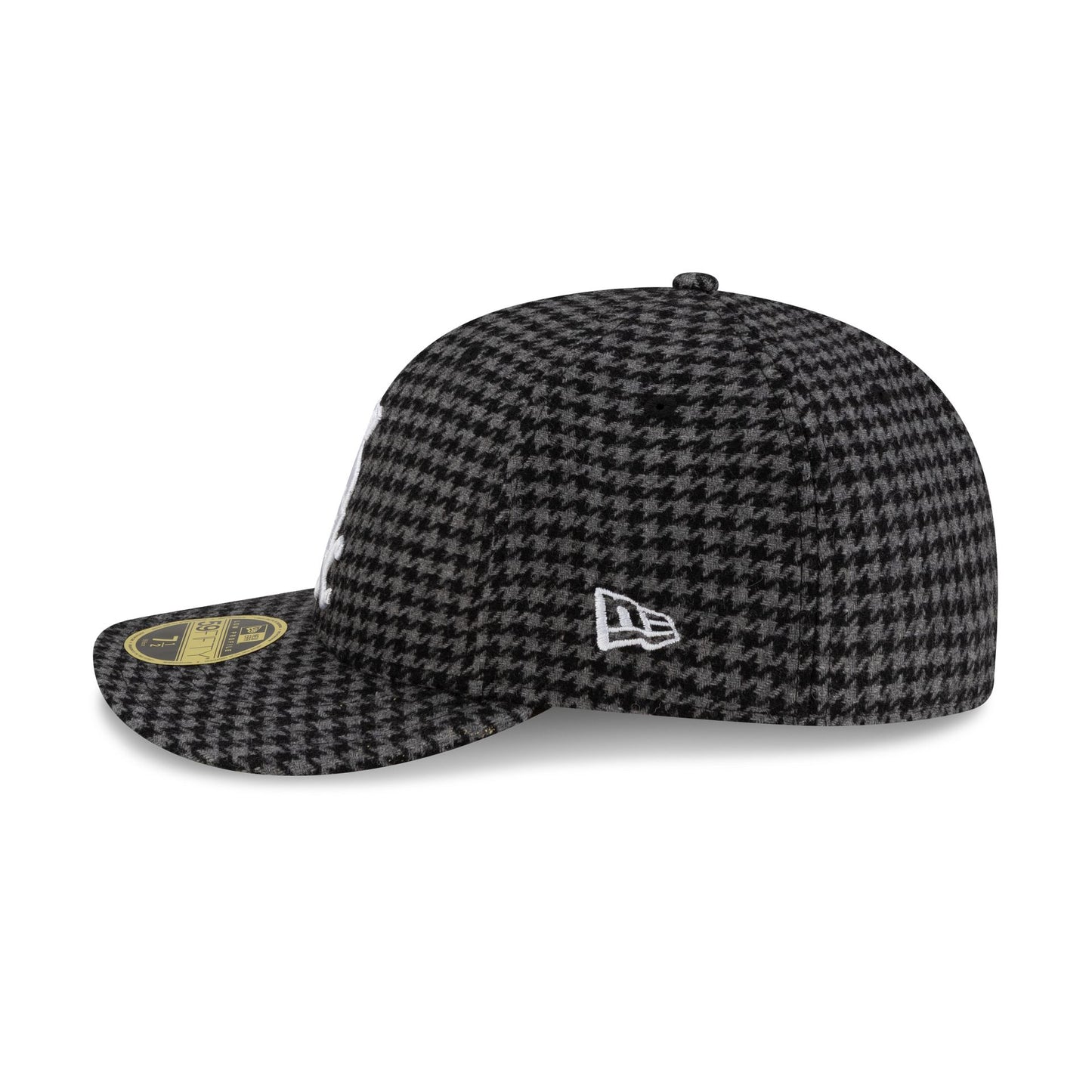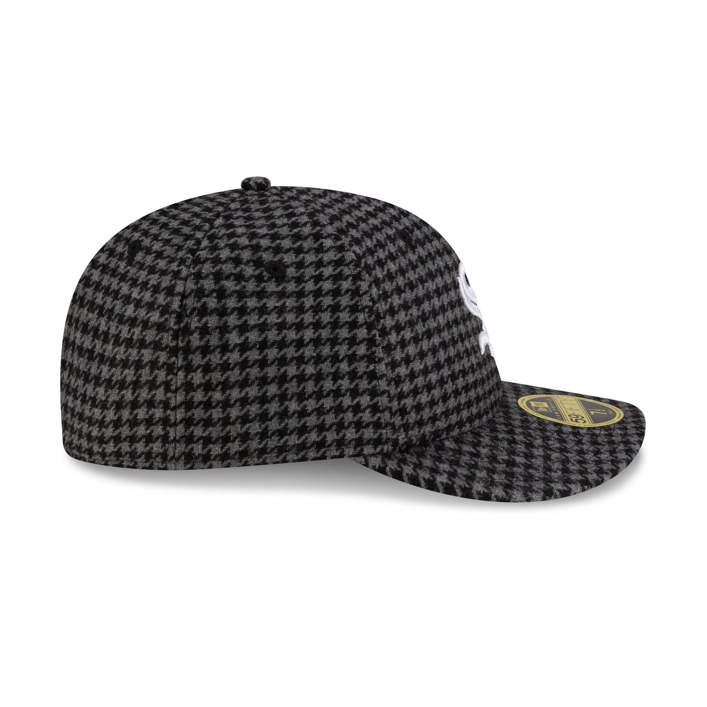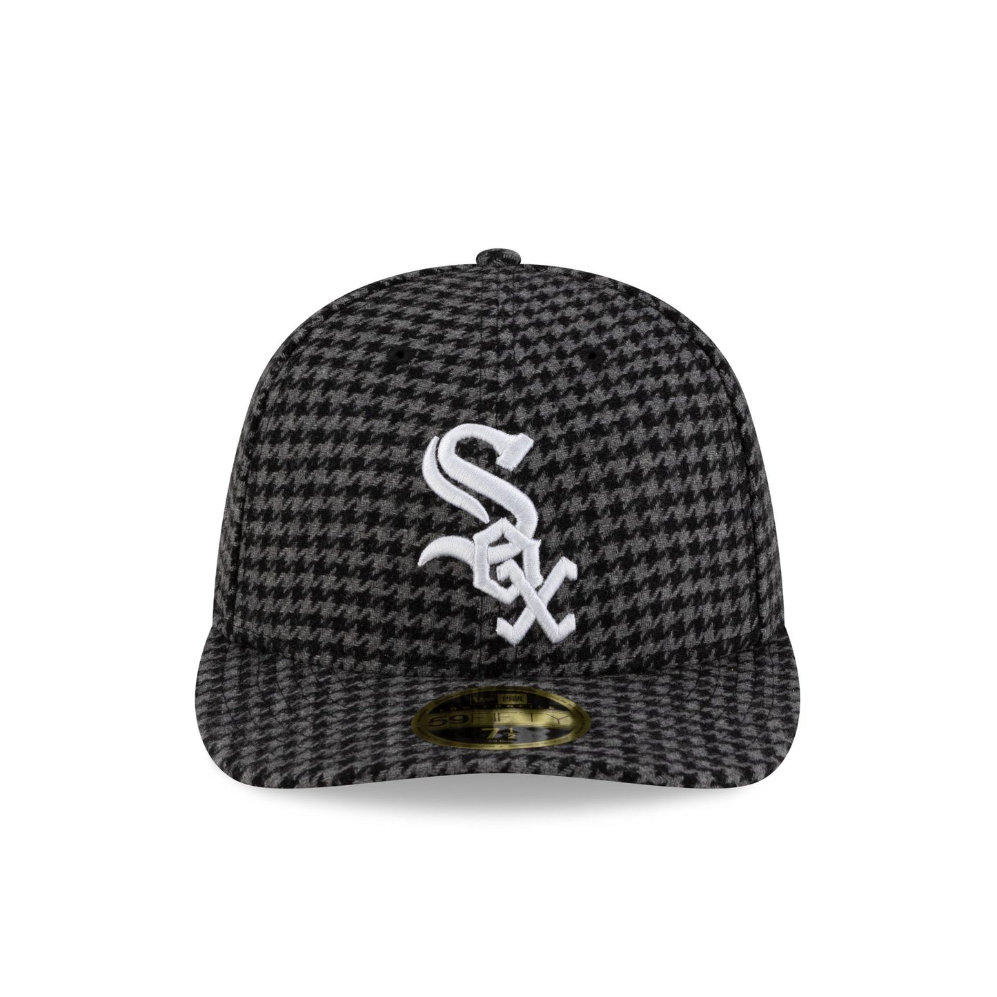 The Chicago White Sox Houndstooth Low Profile 59FIFTY Fitted Cap features an embroidered White Sox logo at the front panels with a Houndstooth fabrication throughout the cap and the MLB Batterman logo at the rear.