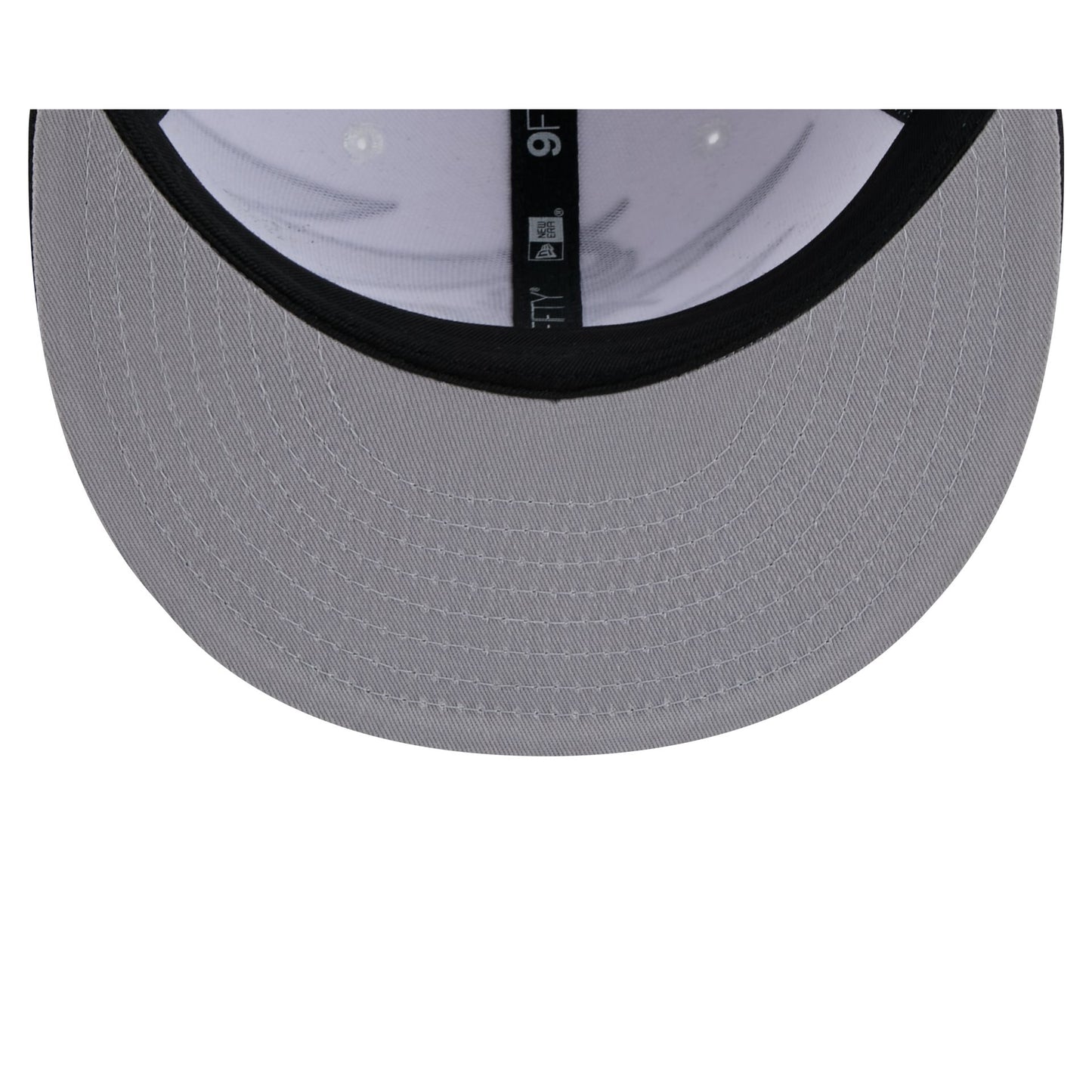 The Chicago White Sox Jagged 9FIFTY Snapback features an embroidered White Sox logo at the front panels with a jagged pattern fabrication throughout the cap. Additional details include a snapback closure at the rear and a gray undervisor.