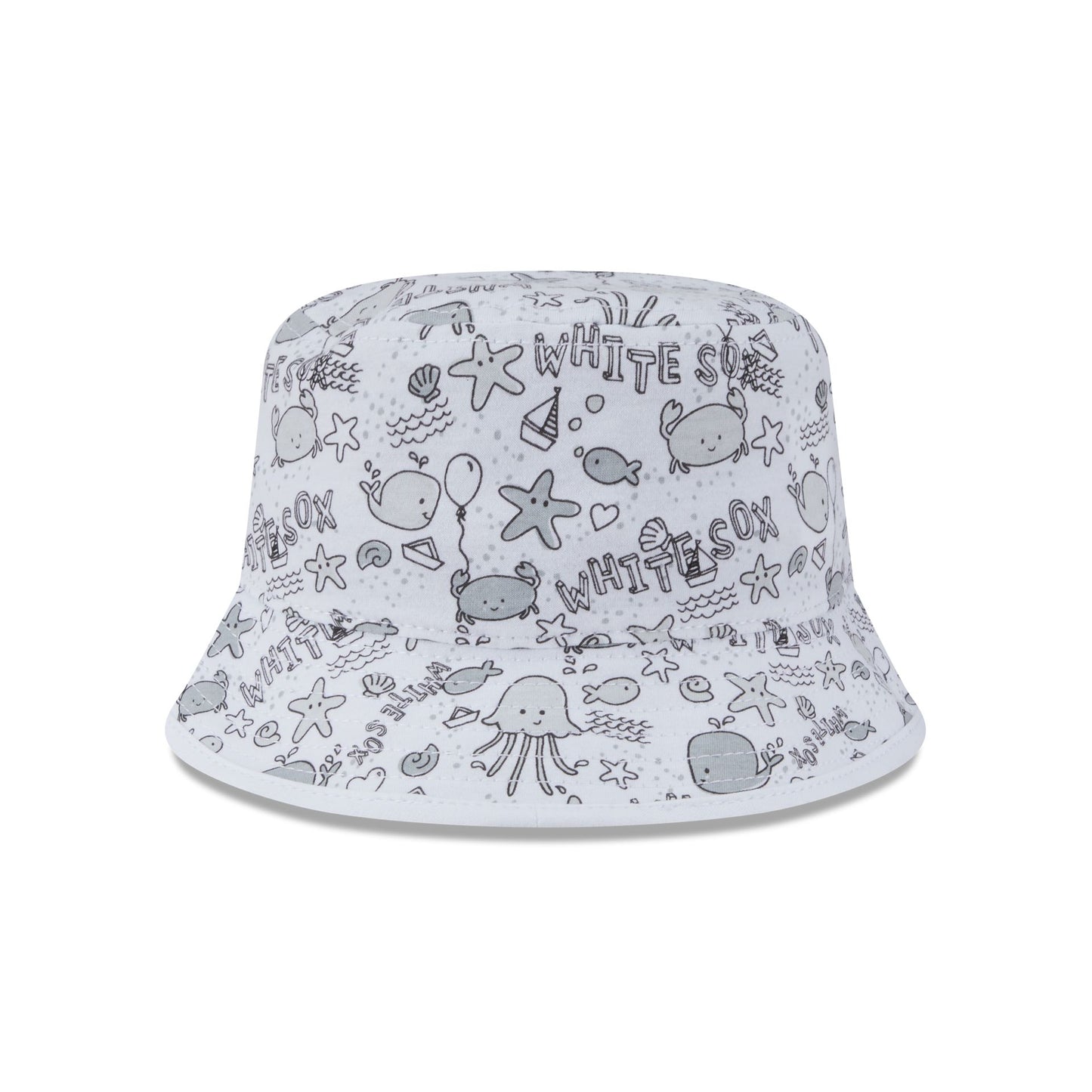 The Chicago White Sox Kids Ocean Bucket Hat features an embroidered White Sox logo at the front with a nautical design throughout the hat.