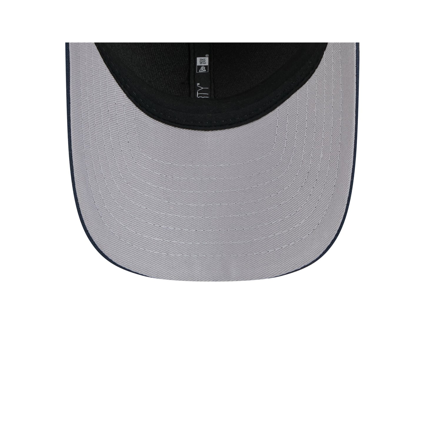 The Chicago White Sox Linen 9FORTY M-Crown Snapback features an embroidered White Sox logo at the front panels with a snapback closure at a pinstripe rear and a gray undervisor.