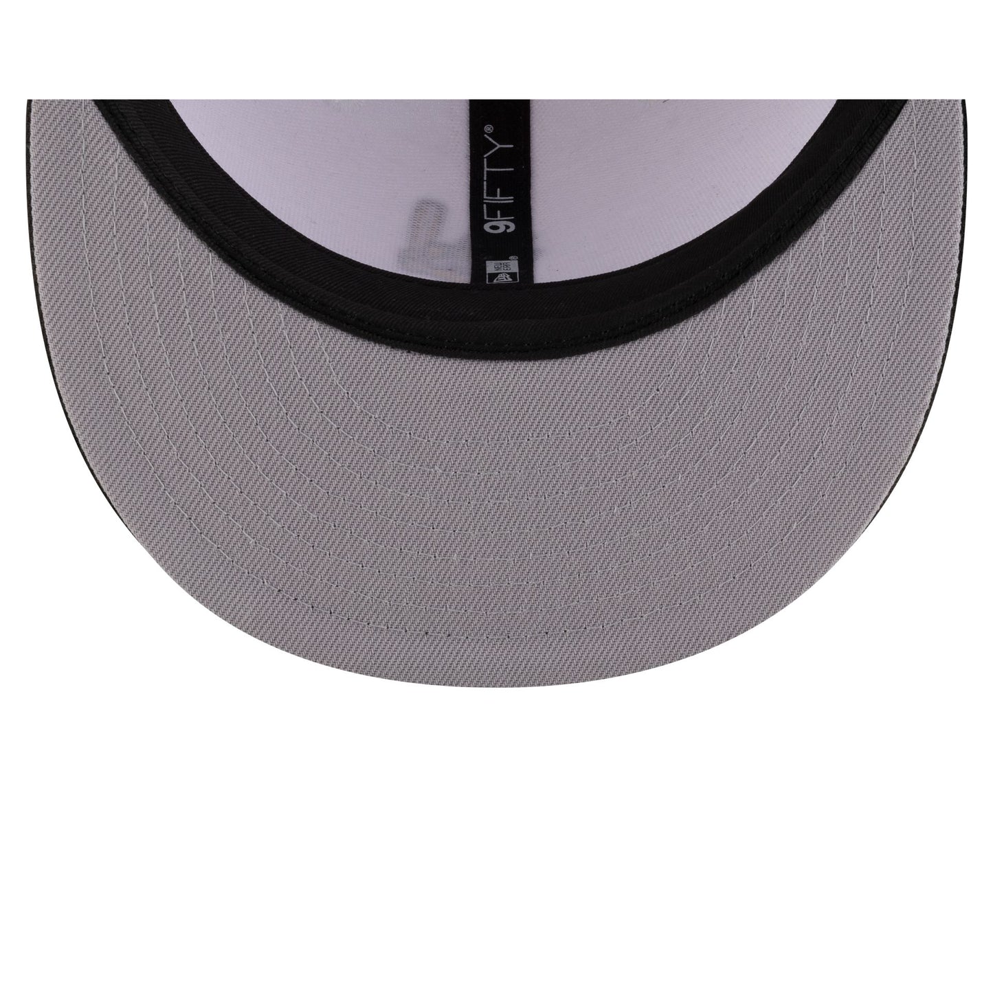 The Chicago White Sox Mascot White 9FIFTY Snapback features an embroidered White Sox mascot at the front panels with a All-Star years patch at the right-wear side. Additional details include a snapback closure at the rear and a gray undervisor.