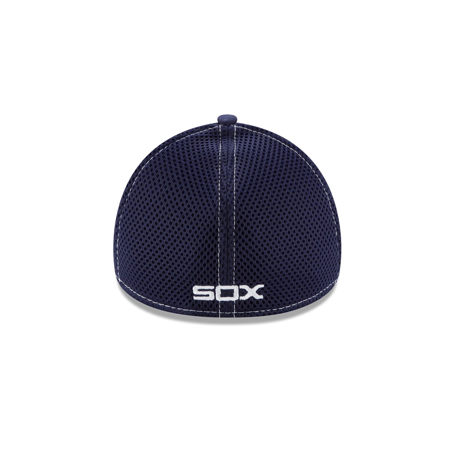The Chicago White Sox NEO 39THIRTY Stretch Fit Cap features an embroidered White Sox logo at the front panels with an alternate logo at the rear and the team name at the visor.