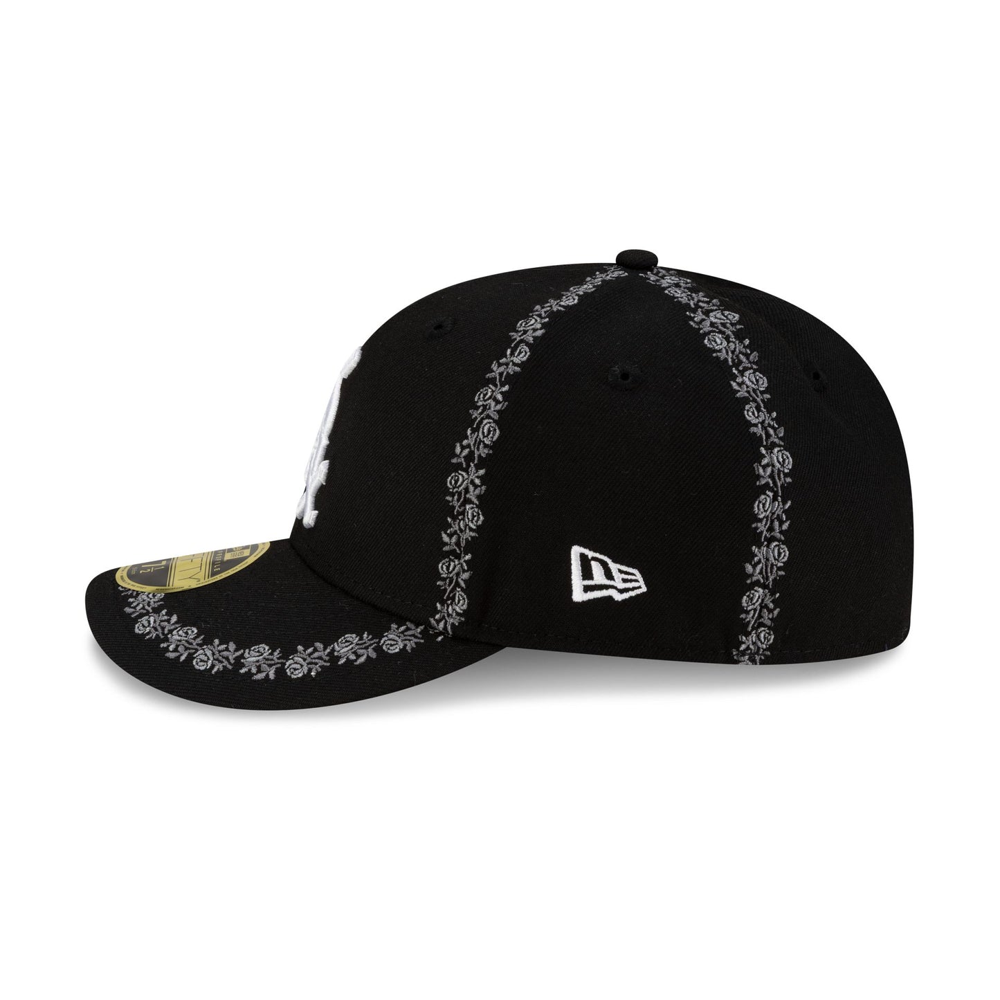 The Chicago White Sox Rose Emblem Low Profile 59FIFTY Fitted Cap features an embroidered White Sox rose logo at the front panels with the MLB Batterman logo at the rear.