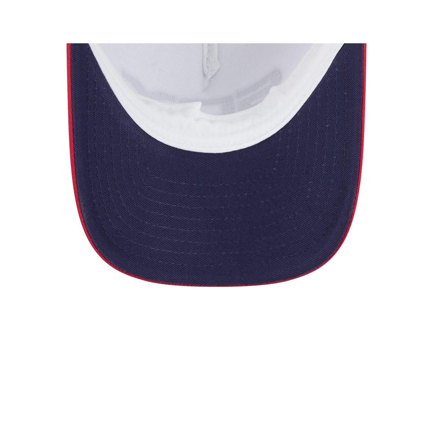 The Chicago White Sox Summer Derby 9FORTY M-Crown A-Frame Snapback features an embroidered White Sox Cooperstown wordmark at the front panel with a 1983 All-Star Game patch at the right-wear side. Additional details include a team logo above an adjustable snapback closure at the rear with a red visor and a navy undervisor.