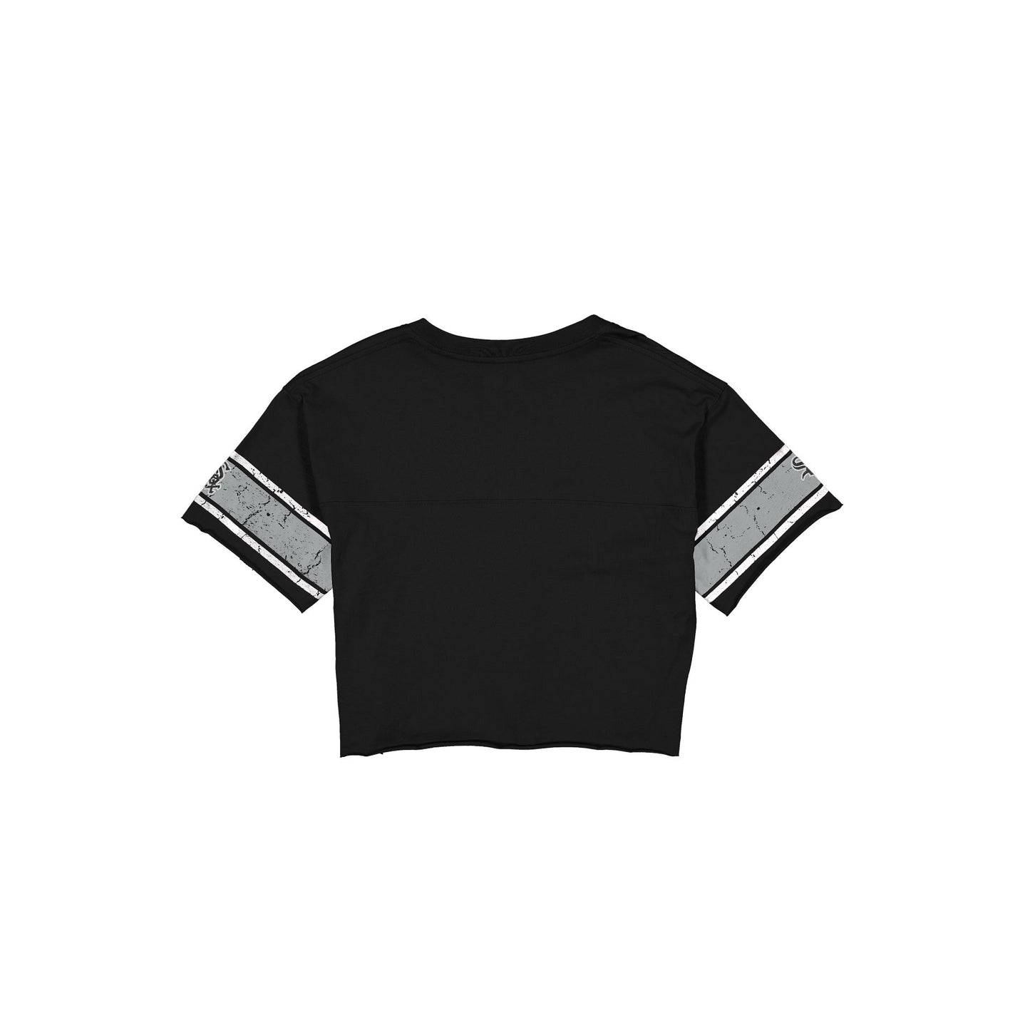 The Chicago White Sox Throwback Women's Cropped T-Shirt features a screen-printed White Sox graphic at the front with a New Era jock tag at the left hip.