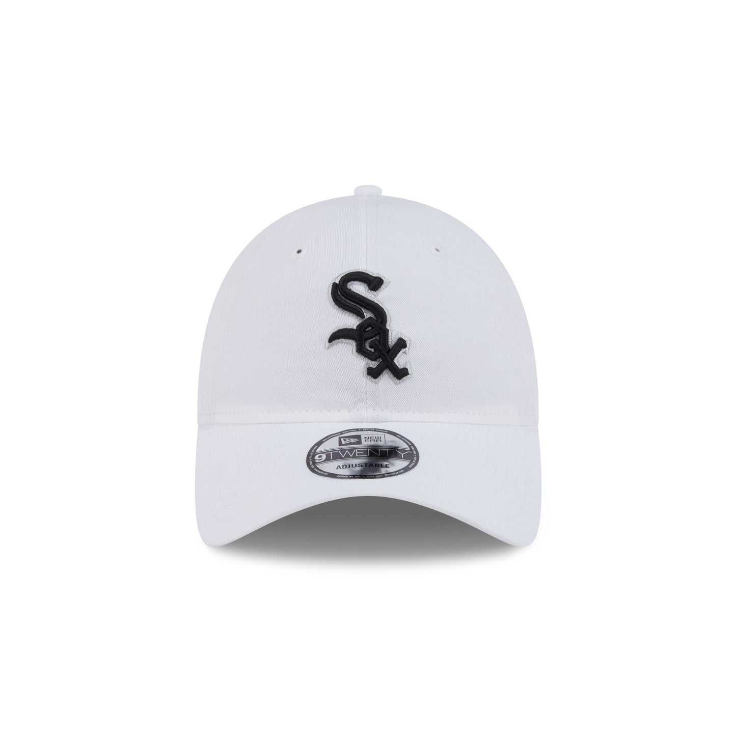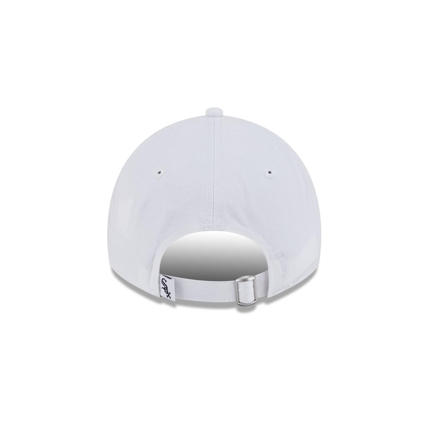 The Chicago White Sox White 9TWENTY Adjustable Cap features an embroidered White Sox logo at the front panel with a matching woven team logo tag at an adjustable D-Ring closure at the rear.