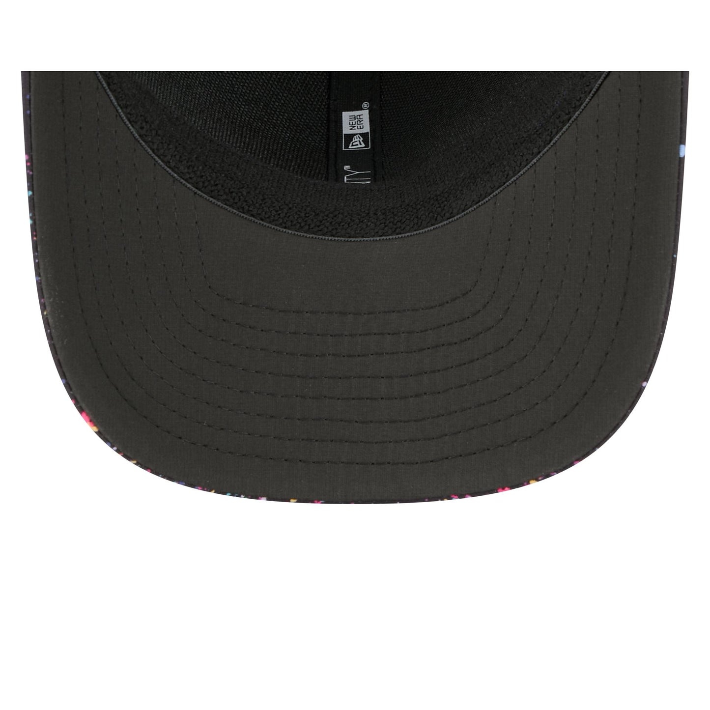 The Cincinnati Bengals 2025 Crucial Catch 9SEVENTY Trucker features an embroidered Bengals logo at the front paint splatter panels with a woven NFL Shield tag above a snapback closure at the rear. Additional details include a Crucial Catch Intercept Cancer patch at the right-wear side with performance mesh rear panels and a black undervisor.