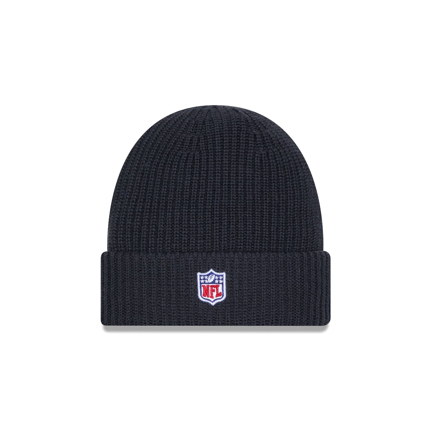 The Cincinnati Bengals 2025 Sideline Cold Weather Steel Clouds Cuff Knit Beanie features a sewn-down silicone Bengals logo patch at the front cuff with a matching Official NFL Shield logo at the rear. The beanie is knit from wool yarn and lined with fleece.