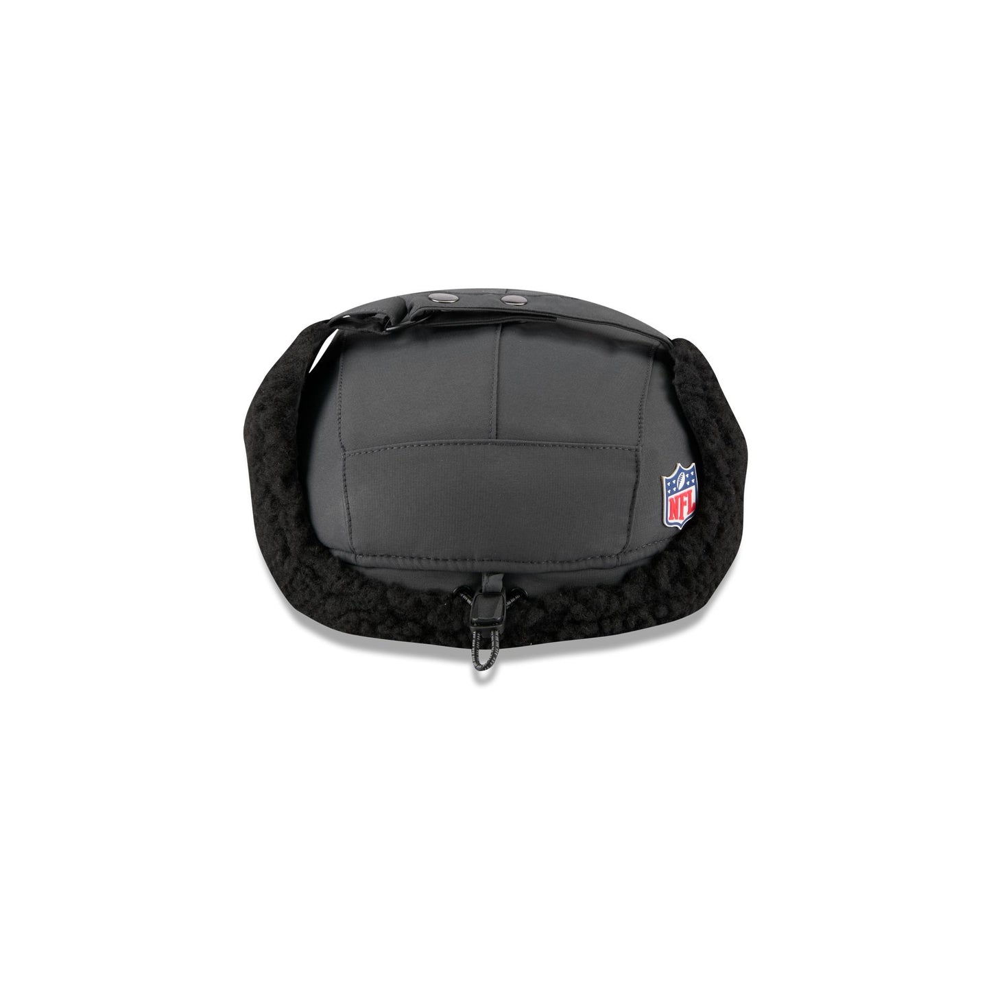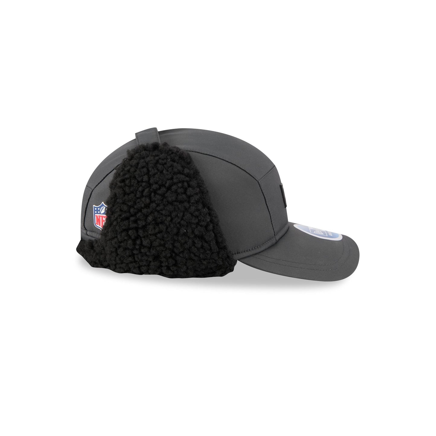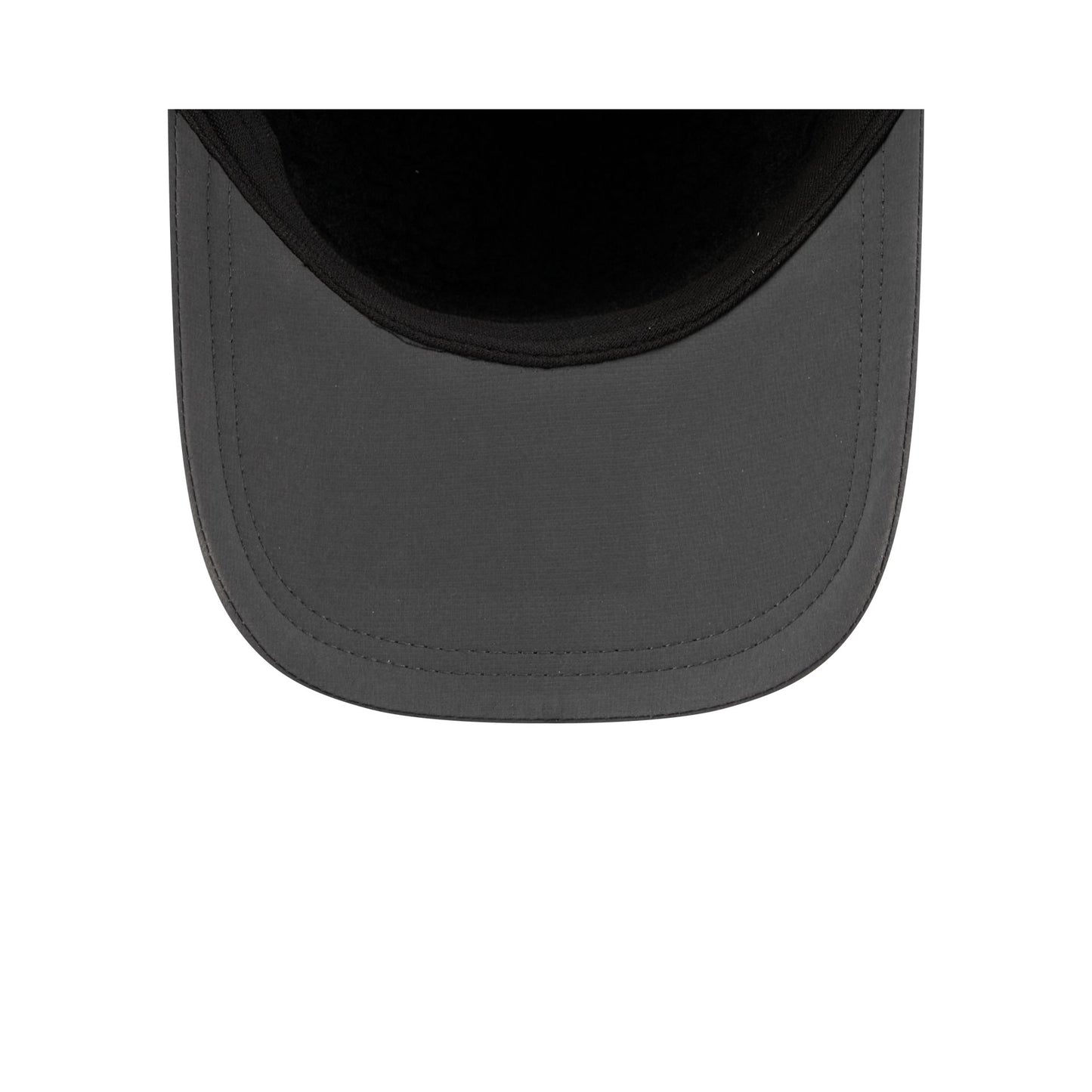 The Cincinnati Bengals 2025 Sideline Cold Weather Steel Clouds Runner Dogear Adjustable Cap features a sewn-down silicone Bengals logo patch at the front panels with a water-repellent quill tech fabrication throughout with an insulated crown and sherpa lining. Additional details include a buckle strap button secured at the top of the crown that folds down to cover the ears, and an adjustable elastic toggle at the back for a customizable fit.