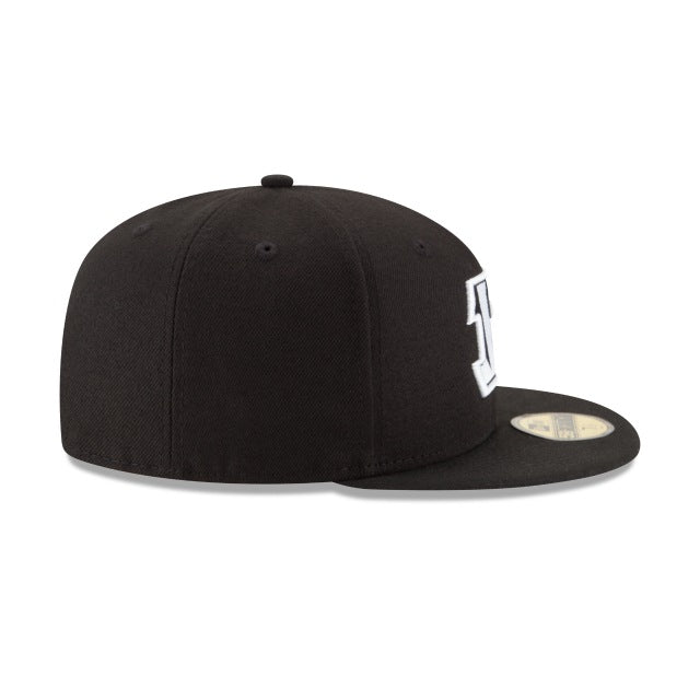 THE BASIC BLACK & WHITE is a 59FIFTY® with a black polyester crown and visor offset with the team logo in white embroidery on the front panels.