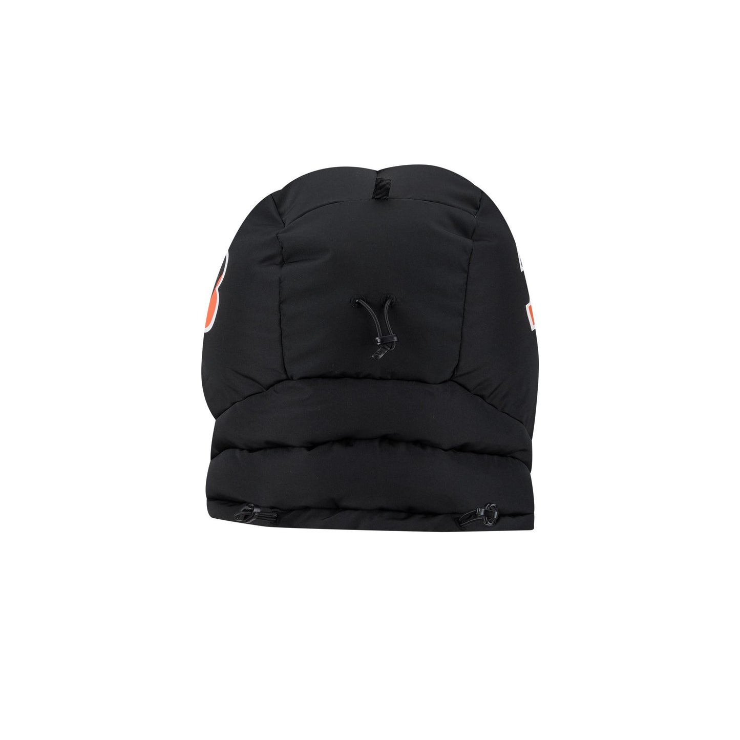 The Cincinnati Bengals Helmet Puffer Hood features an embroidered Bengals wordmark at the front with a helmet design at each side. Additional details include an insulated filling with adjustable drawstrings at the back of the head and neck. The puffer helmet has a 4 snap-button closure at the right.