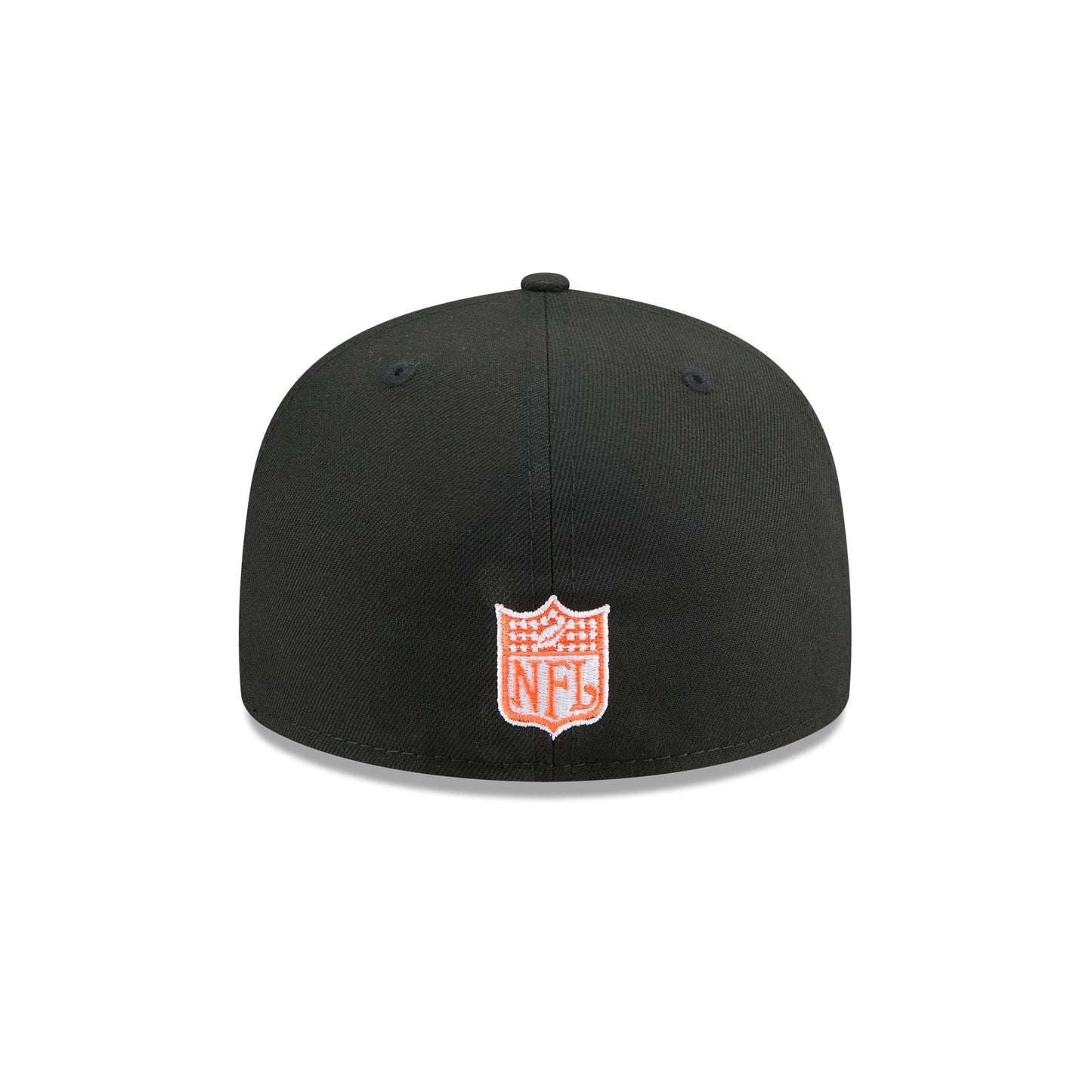 The Cincinnati Bengals Oversized 59FIFTY Fitted Cap features an embroidered Bengals Historic oversized graphic at the front panels and visor. Additional details include a logo at the right-wear side, an NFL Shield logo at the rear, and a gray undervisor.