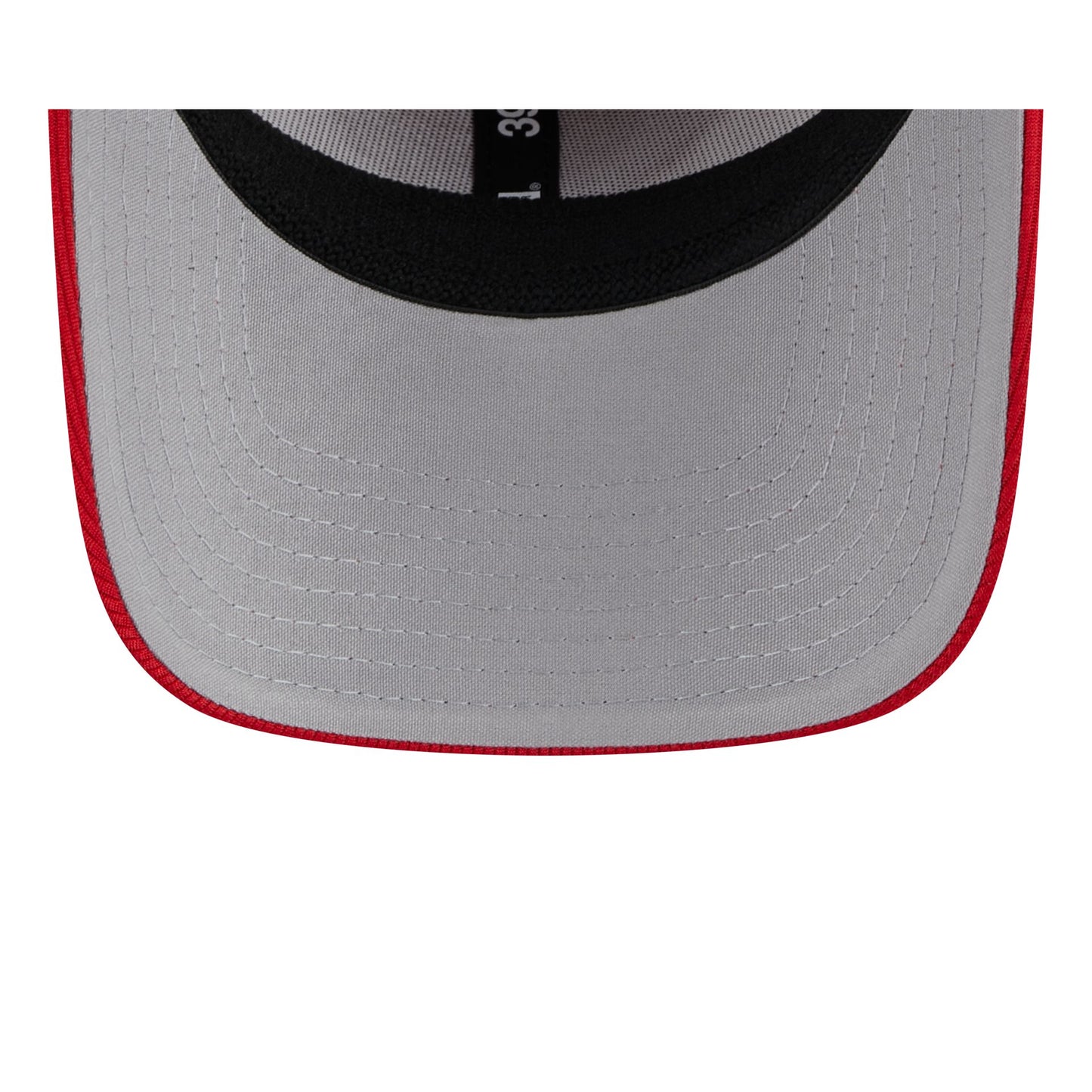 The Cincinnati Reds 2025 Batting Practice 39THIRTY Stretch Fit Cap features an embroidered Reds logo at the front panels with a matching team wordmark at the rear. Additional details include a pivot knit fabrication, a red visor, and a gray undervisor.