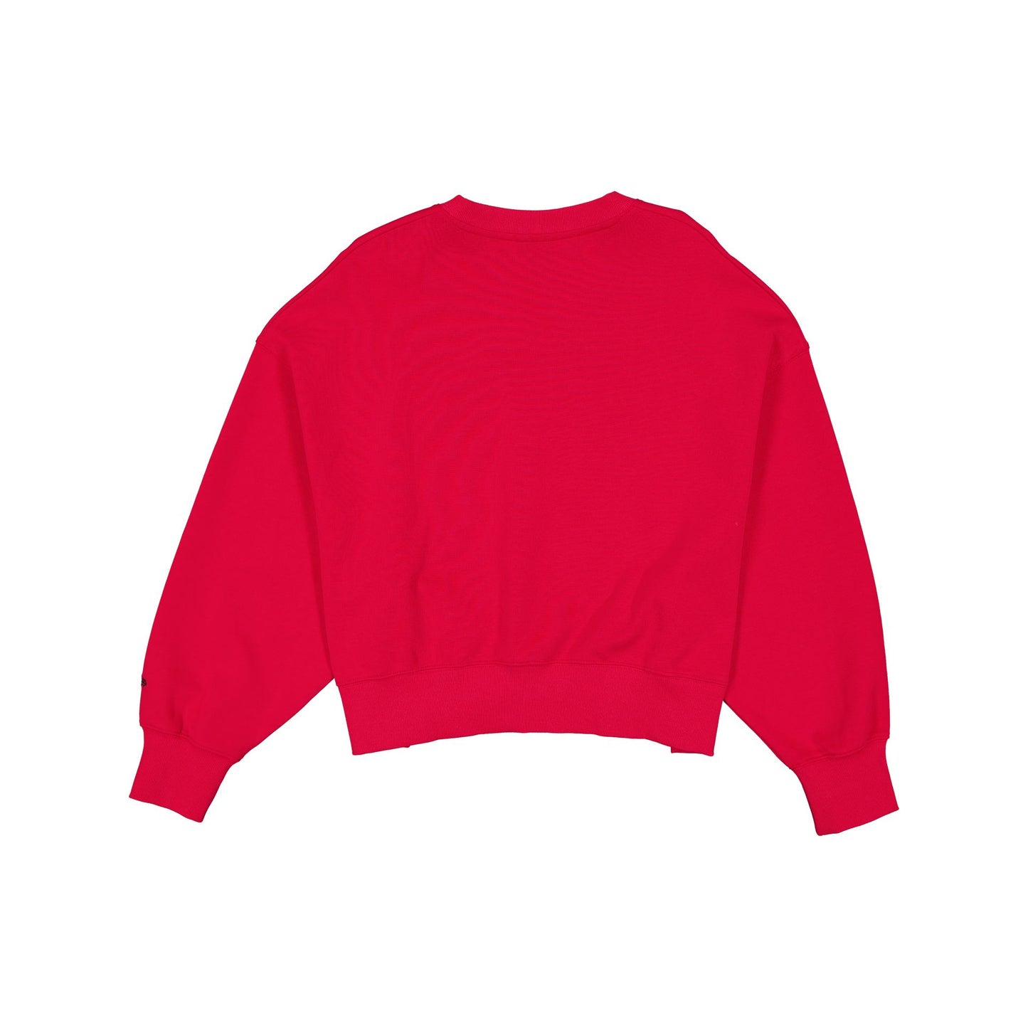 The Cincinnati Reds 2026 City Connect Women's Cropped Crewneck features a screen-printed Reds wordmark and logo graphic at the front with a woven team jocktag at the hem.