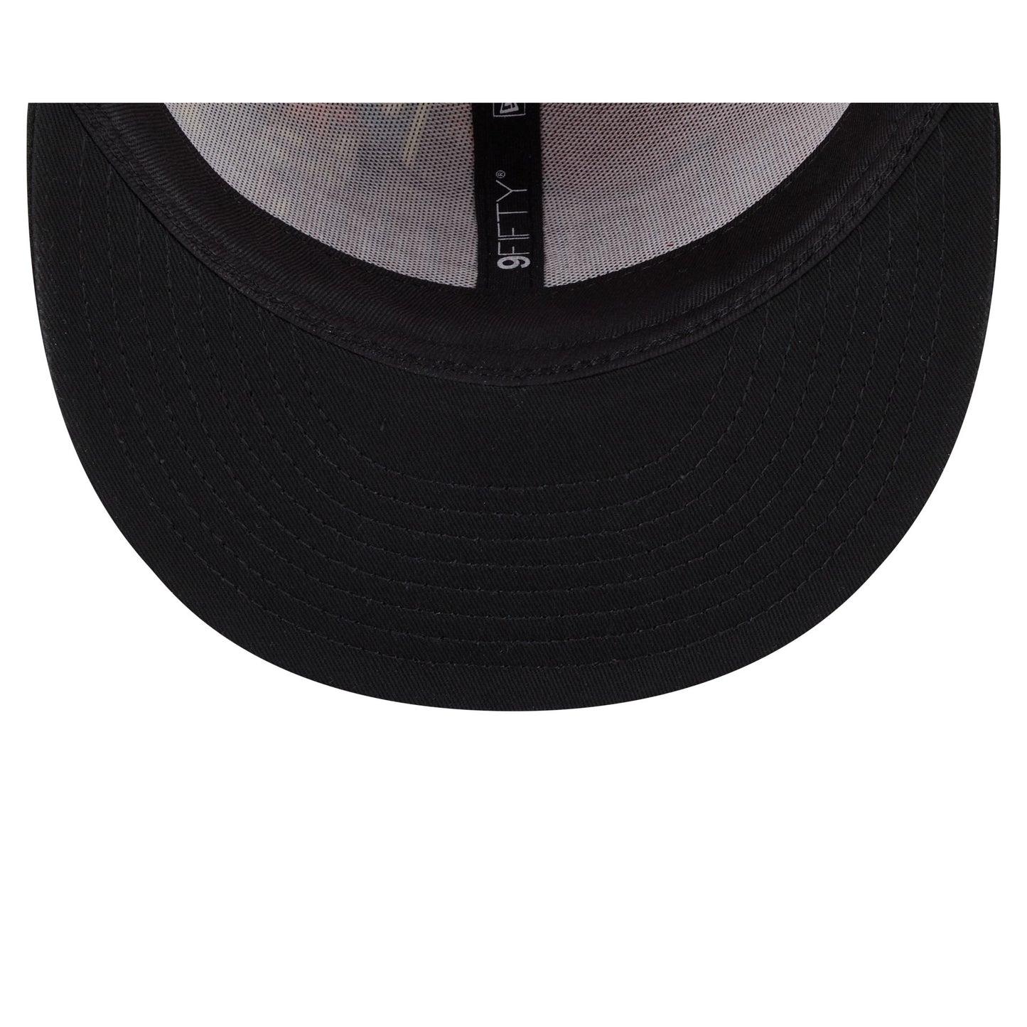 The Cincinnati Reds Diamond Hero Edition 9FIFTY Snapback features an embroidered Reds onomatopoeia pop wordmark at the front panels with baseball comic book prints at the front and back panel. Additional details include a ZOOM! wordmark at the left-wear side, the MLB Batterman logo above a snapback closure at the rear, and a gray undervisor.