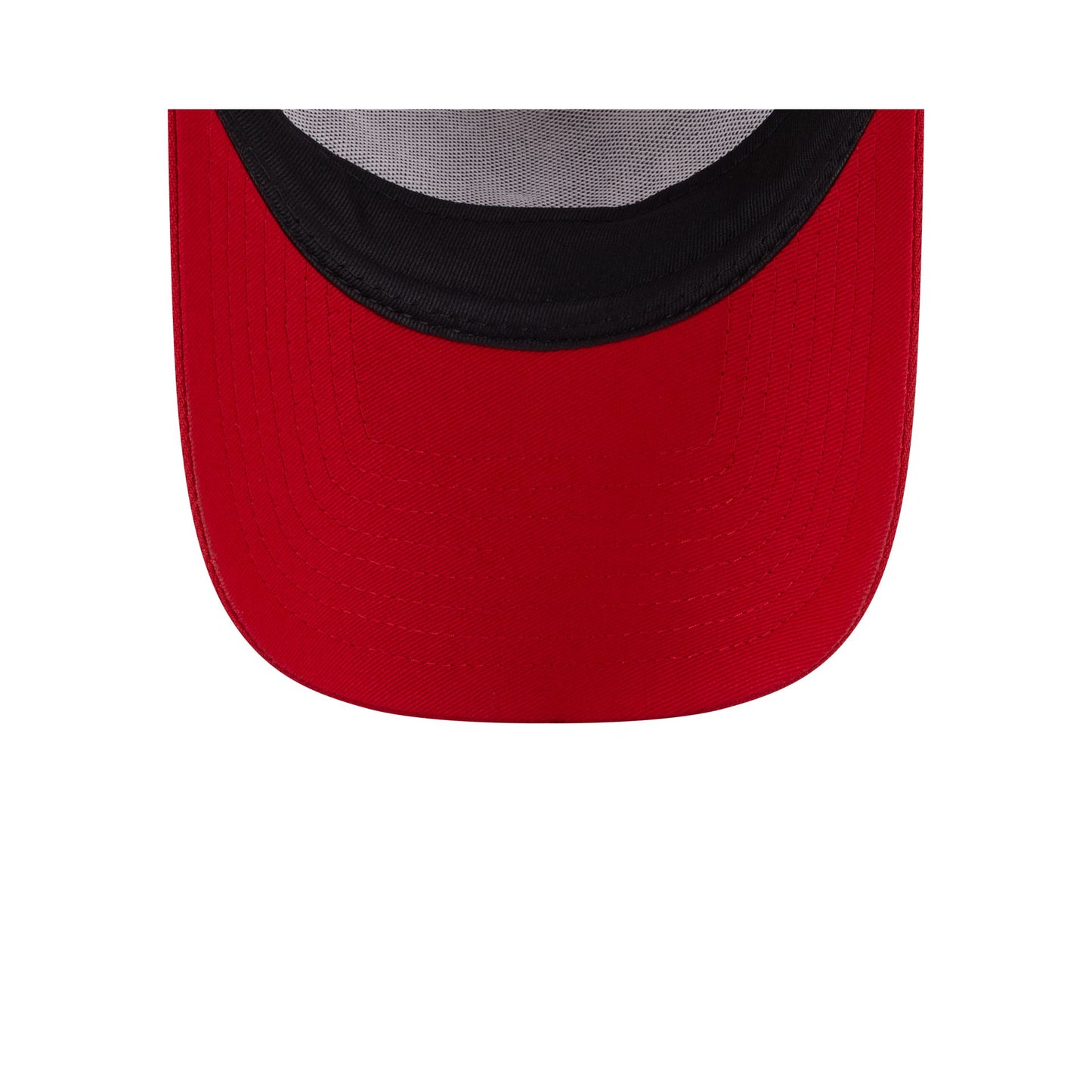 The Cincinnati Reds Generation Mascots 9FORTY A-Frame Trucker features an embroidered Reds baby and adult mascot at the front panels. Additional details include a snapback closure at a mesh rear.
