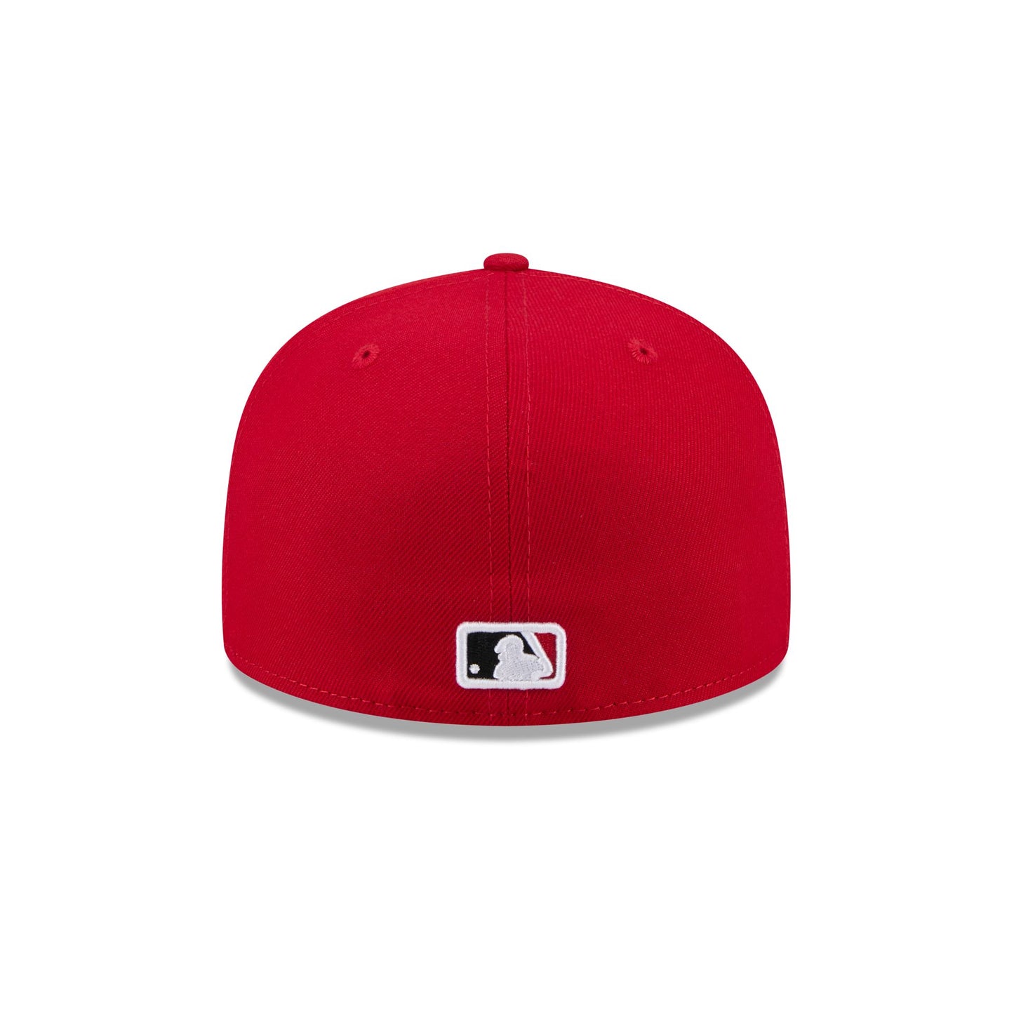 The Cincinnati Reds Jackie Robinson Day 2025 59FIFTY Fitted Cap features an embroidered Reds logo at the front panels with an MLB Batterman logo at the rear. Additional details include a Jackie Robinson Breaking Barriers patch at the right-wear side and Robinson's embroidered signature on a green undervisor.