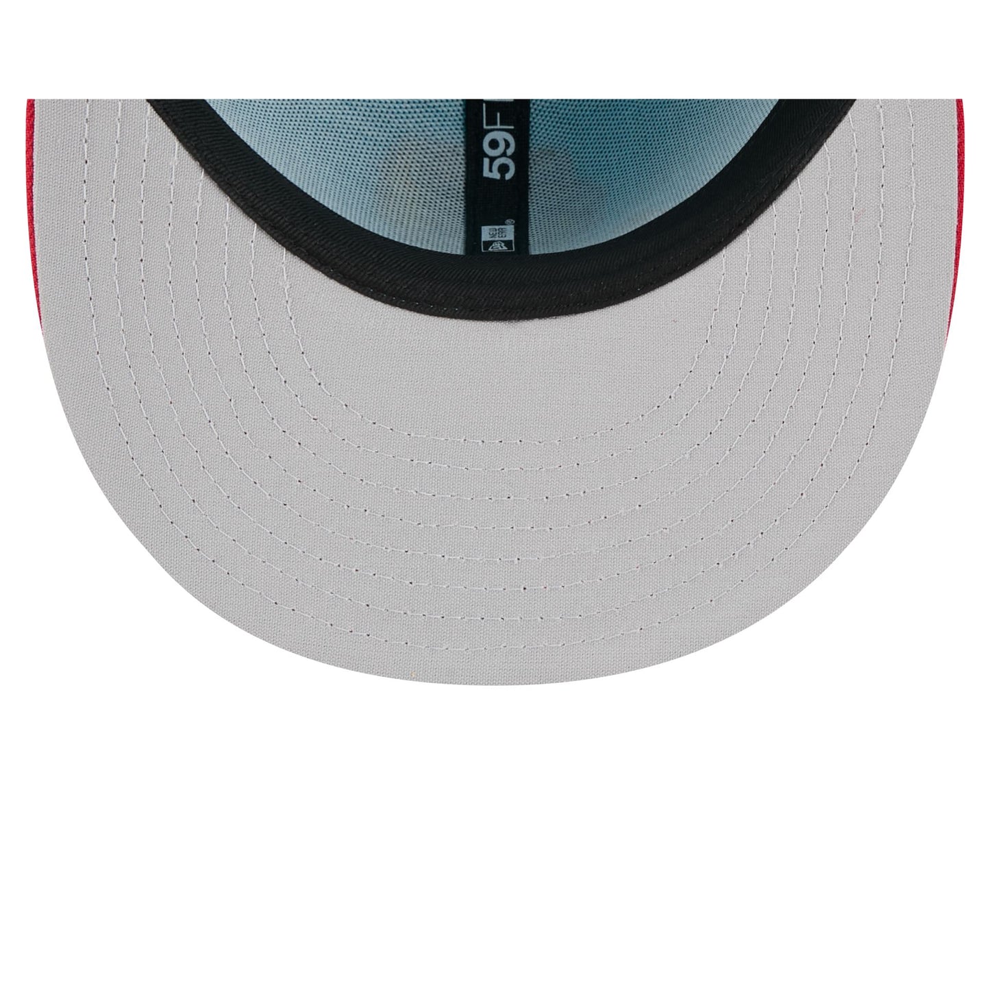 The Clearwater Threshers Theme Night 59FIFTY Fitted Cap features an embroidered Threshers theme night logo at the front panels with a matching MiLB Batterman logo at the rear and a gray undervisor.