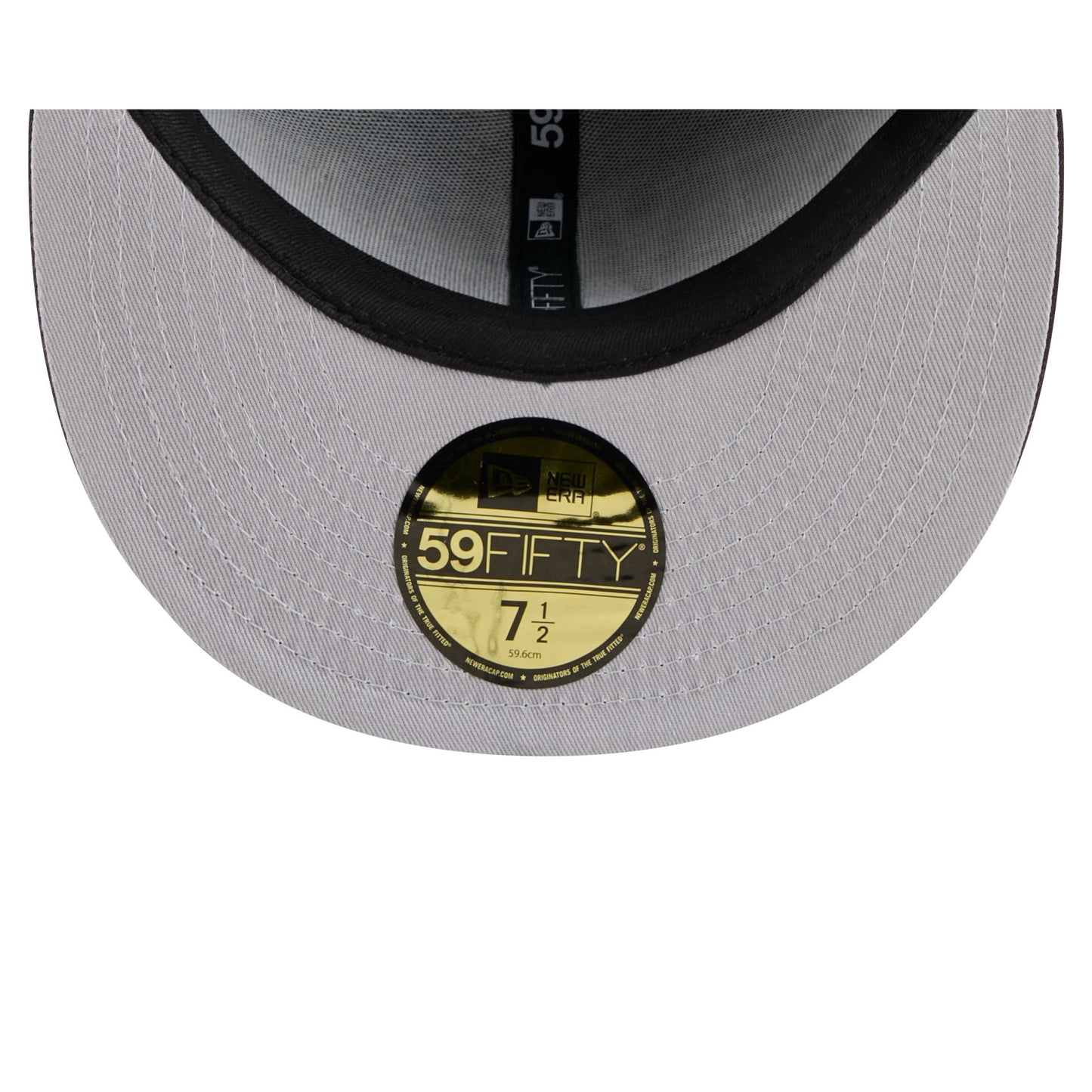 The Cleveland Browns Oversized 59FIFTY Fitted Cap features an embroidered Browns Historic oversized graphic at the front panels and visor. Additional details include a logo at the right-wear side, an NFL Shield logo at the rear, and a gray undervisor.