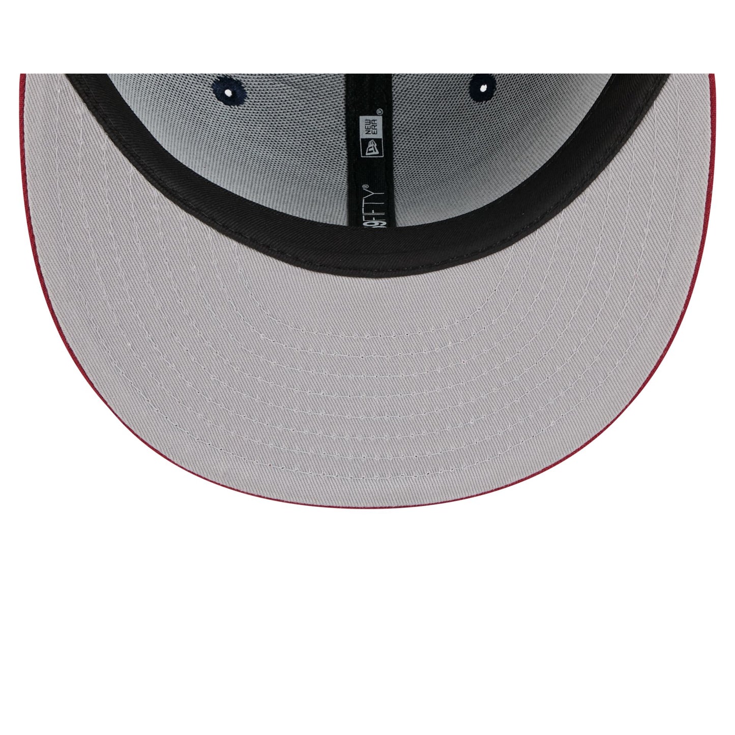 The Cleveland Cavaliers 2025 Classic Edition 59FIFTY Fitted Cap features an embroidered Cavaliers logo at the front panels with a matching team wordmark at the right-wear side, an NBA Logoman at the rear, and a gray undervisor.