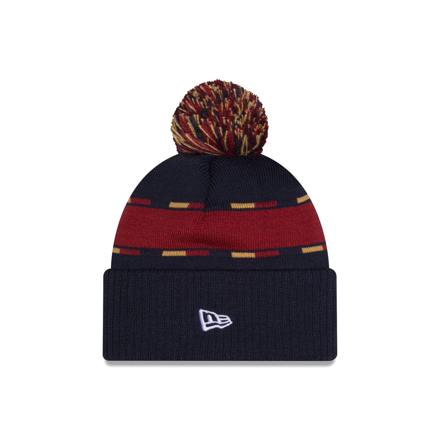 The Cleveland Cavaliers 2025 Classic Edition Pom Knit features an embroidered Cavaliers logo at the front cuff with an NBA Logoman at the rear and a one-time removable pom.