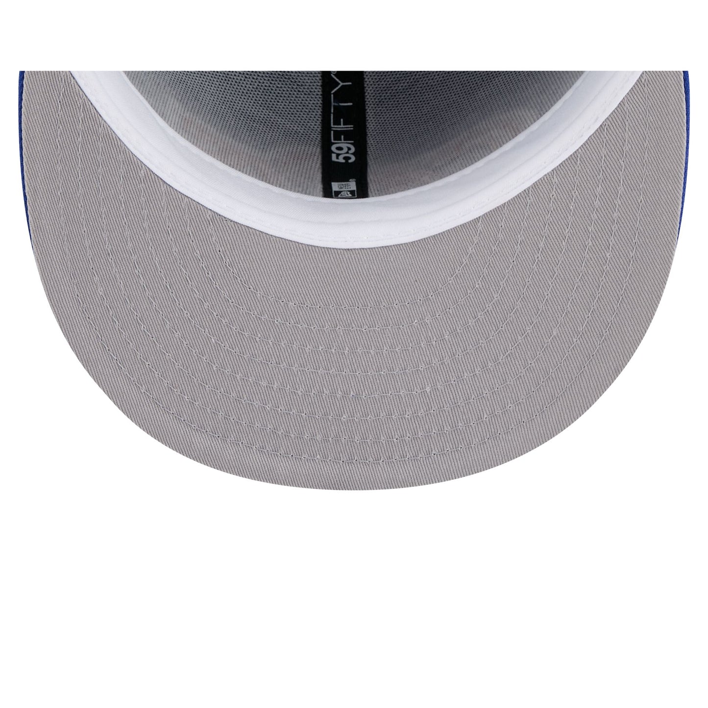 The Cleveland Cavaliers 1983-1993 Hardwood Classics 59FIFTY Fitted Cap features an embroidered vintage Cavaliers logo at the front panels with the NBA Logoman at the rear and a gray undervisor.