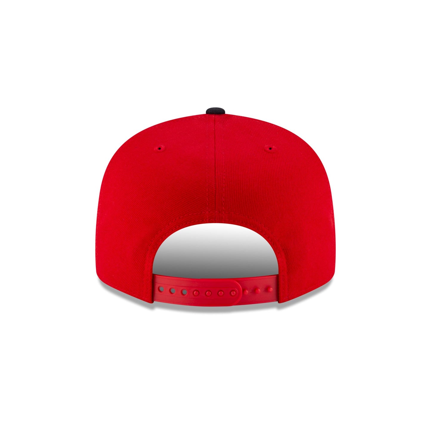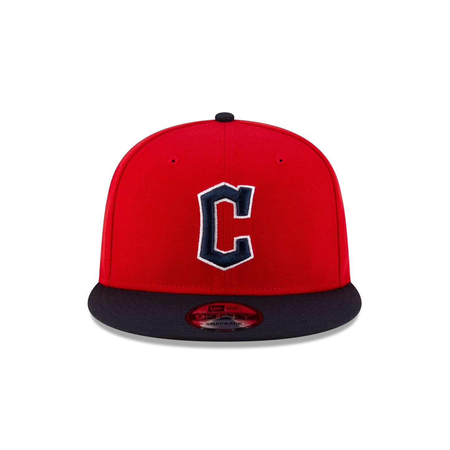 The Cleveland Guardians 2025 Post Season Side Patch 9FIFTY Snapback features an embroidered Guardians logo at the front panels with a 2025 Post Season patch at the right-wear side and an adjustable snapback closure at the rear.