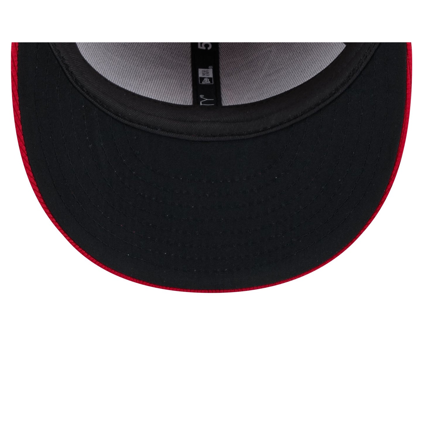 The Cleveland Guardians 2025 Spring Training Low Profile 59FIFTY Fitted Cap features an embroidered Guardians logo at the front panels with a matching MLB Batterman logo at the rear. Additional details include a pivot knit fabrication with a 2025 Spring Training patch at the right-wear side and a black undervisor.
