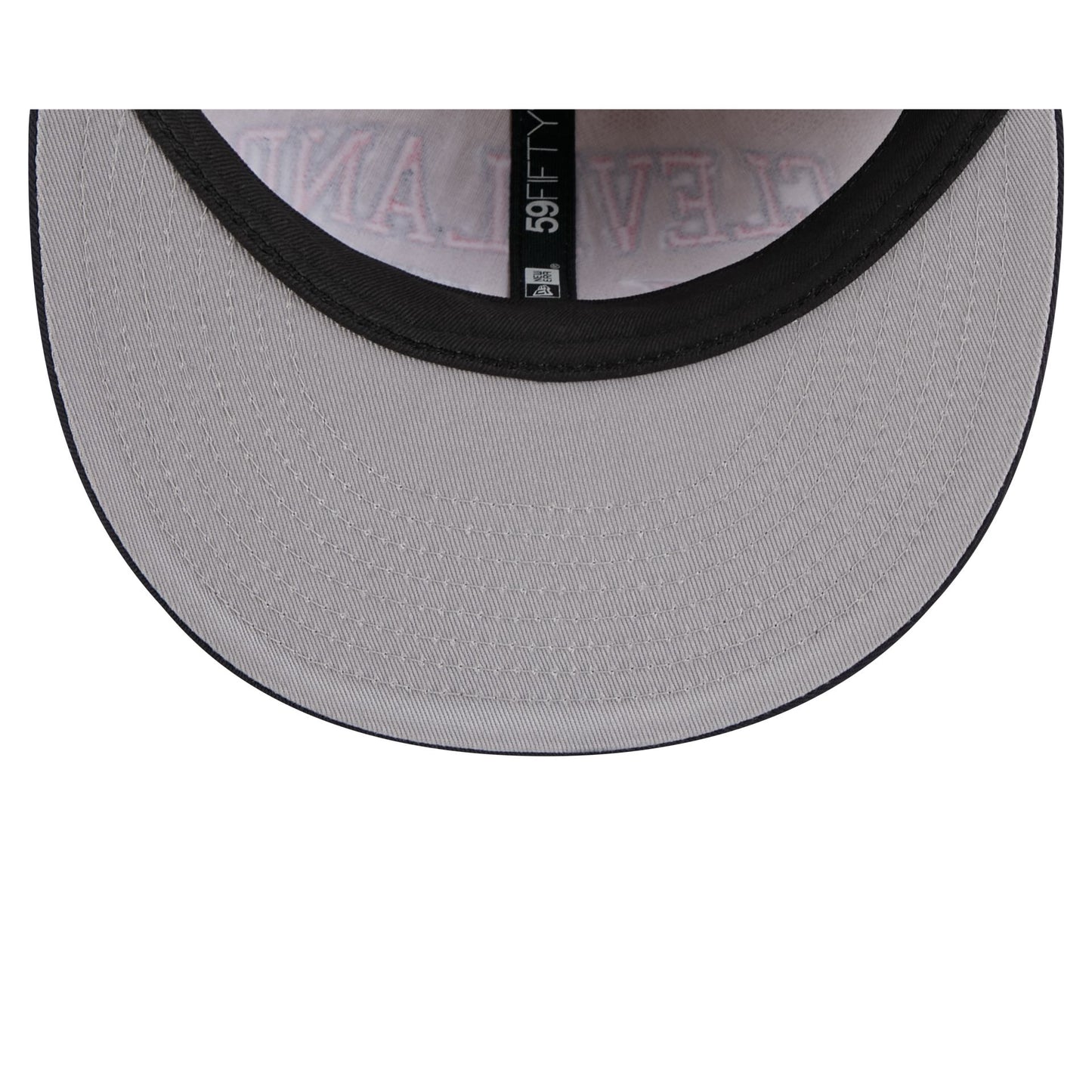 The Cleveland Guardians Camel Retro Crown 59FIFTY Fitted Cap features an embroidered Guardians Cooperstown wordmark, logo, and league patch at the front panels. Additional details include an MLB Batterman logo at the rear and a gray undervisor.