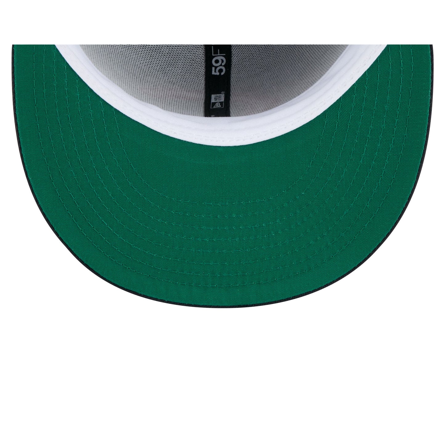 The Cleveland Guardians Hall of Fame 2025 59FIFTY Fitted Cap features an embroidered Guardians Cooperstown logo at the front panels with a matching MLB Batterman logo at the rear, a National Baseball Hall of Fame patch at the right-wear side, and a green undervisor.