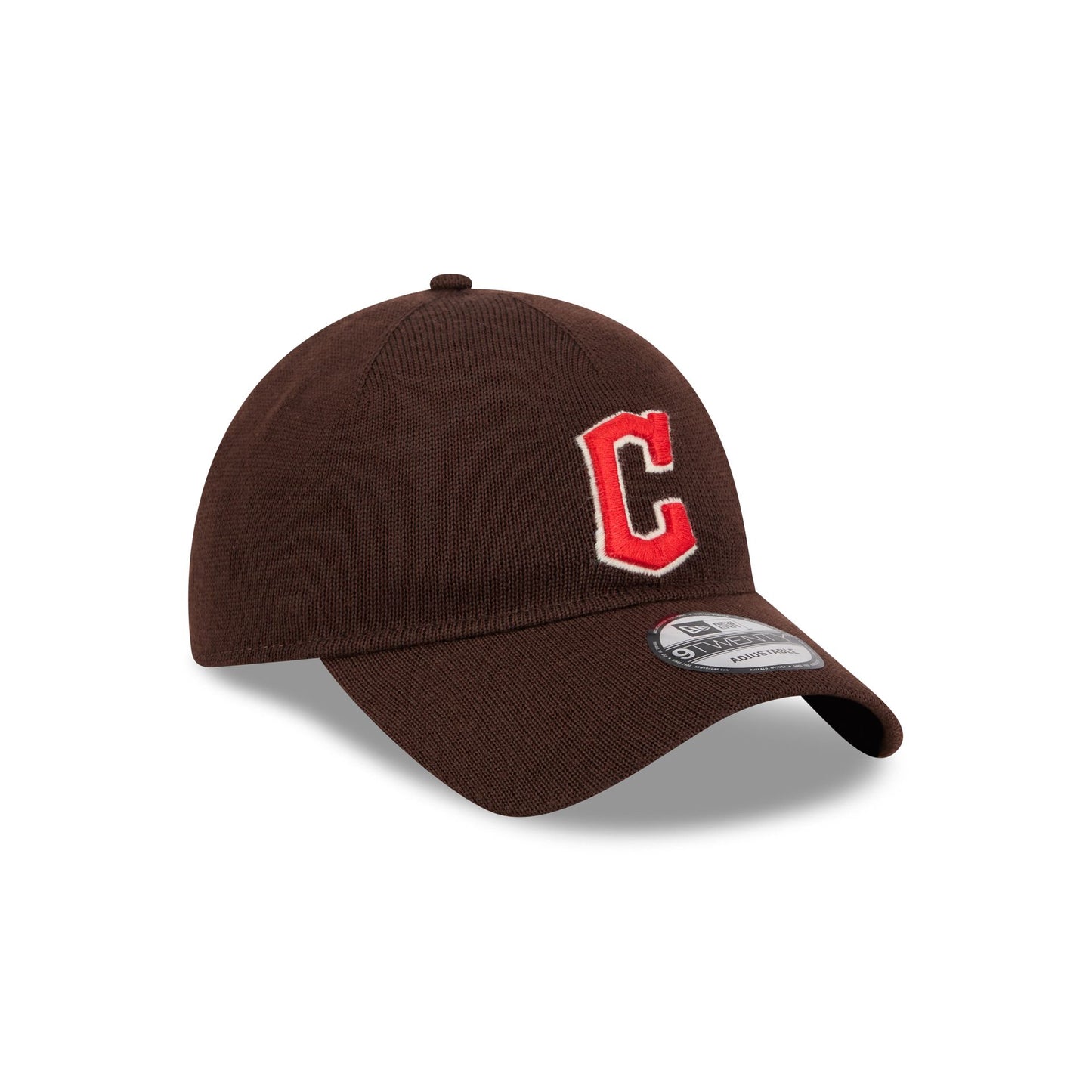 The Cleveland Guardians Merino Wool Tiramisu 9TWENTY Adjustable Cap features an embroidered Guardians logo at the front panels with a merino wool fabrication and an adjustable D-Ring closure at the rear.