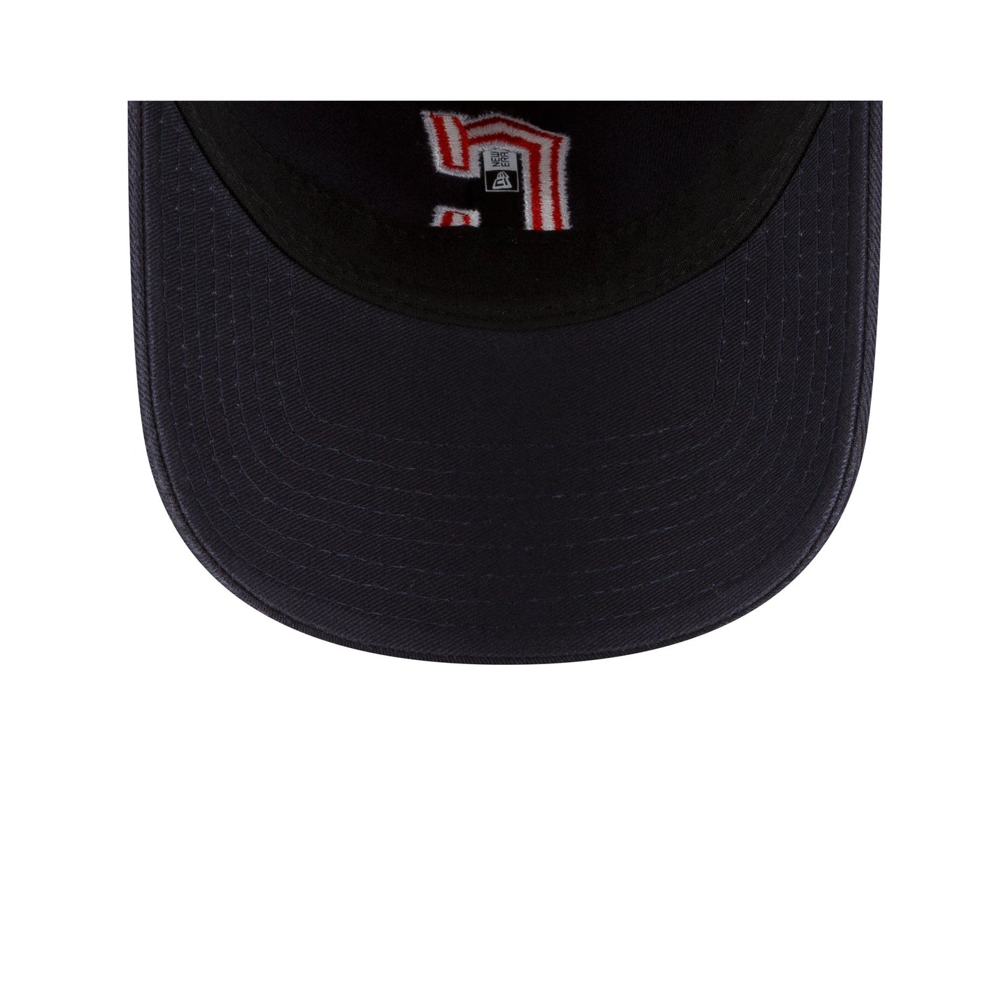 The Cleveland Guardians Women's Core Classic 9TWENTY Adjustable Cap features an embroidered Guardians at the front panels with a woven tab displaying the team logo and an adjustable closure at the rear.