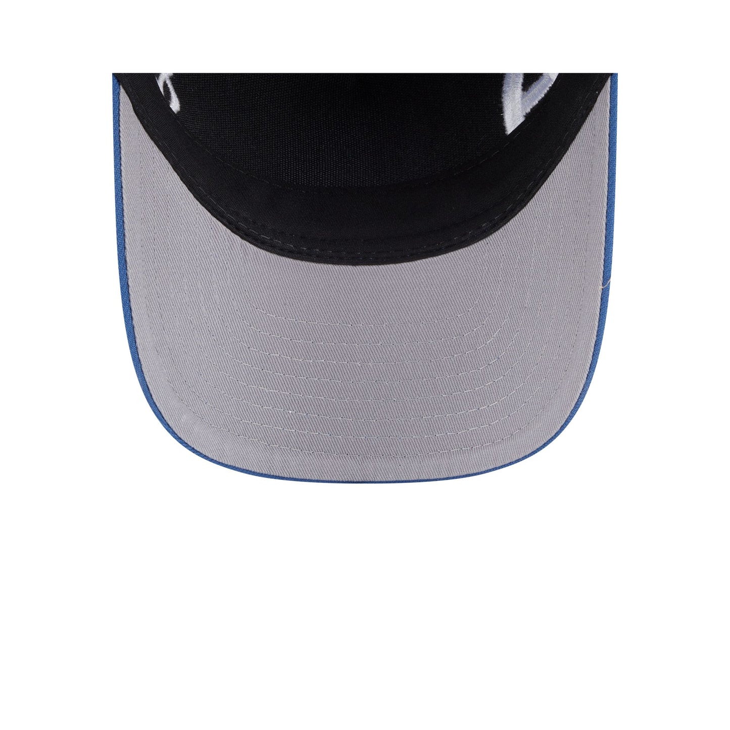 The Club América Indigo 9FORTY M-Crown A-Frame Trucker features the América primary logo embroidered at the front panel with alternate team logos throughout the crown, a team wordmark above a snapback closure at the rear, and a gray undervisor.