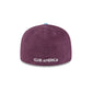 The Club América Plum Corduroy 59FIFTY Fitted Cap features an embroidered América logo at the front panels with a matching team wordmark at the rear, a blue corduroy visor, and a gray undervisor.