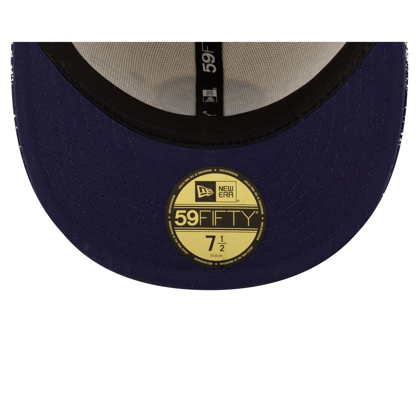 The Club América Splattered Visor 59FIFTY Fitted Cap features an embroidered América graffiti wordmark with a layered logo on top and a paint splatter detailed visor. Additional details include a team wordmark at the rear and a navy undervisor.