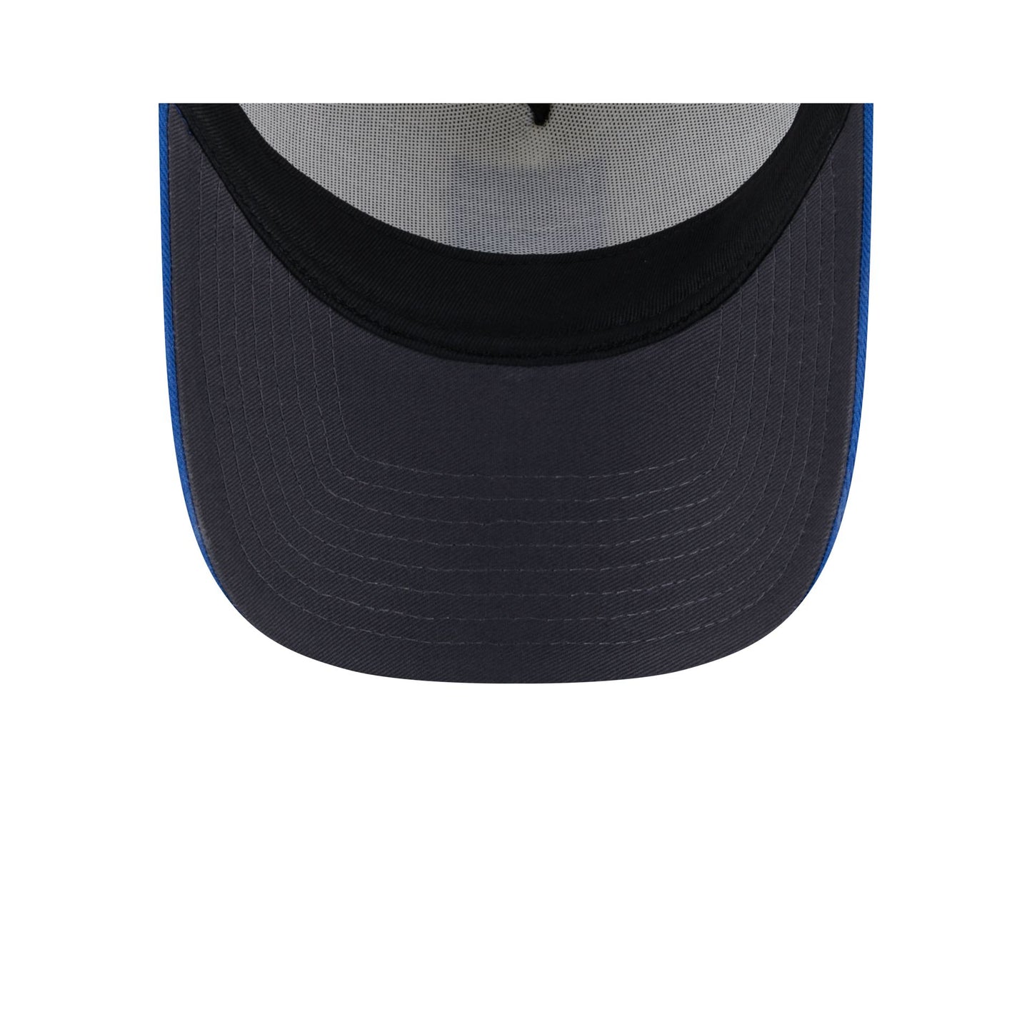 The Club Tigres UANL Alt Team Color 9FORTY Trucker features an embroidered Tigres logo at the front panel with a blue visor, gray undervisor, and a snapback closure at the rear.