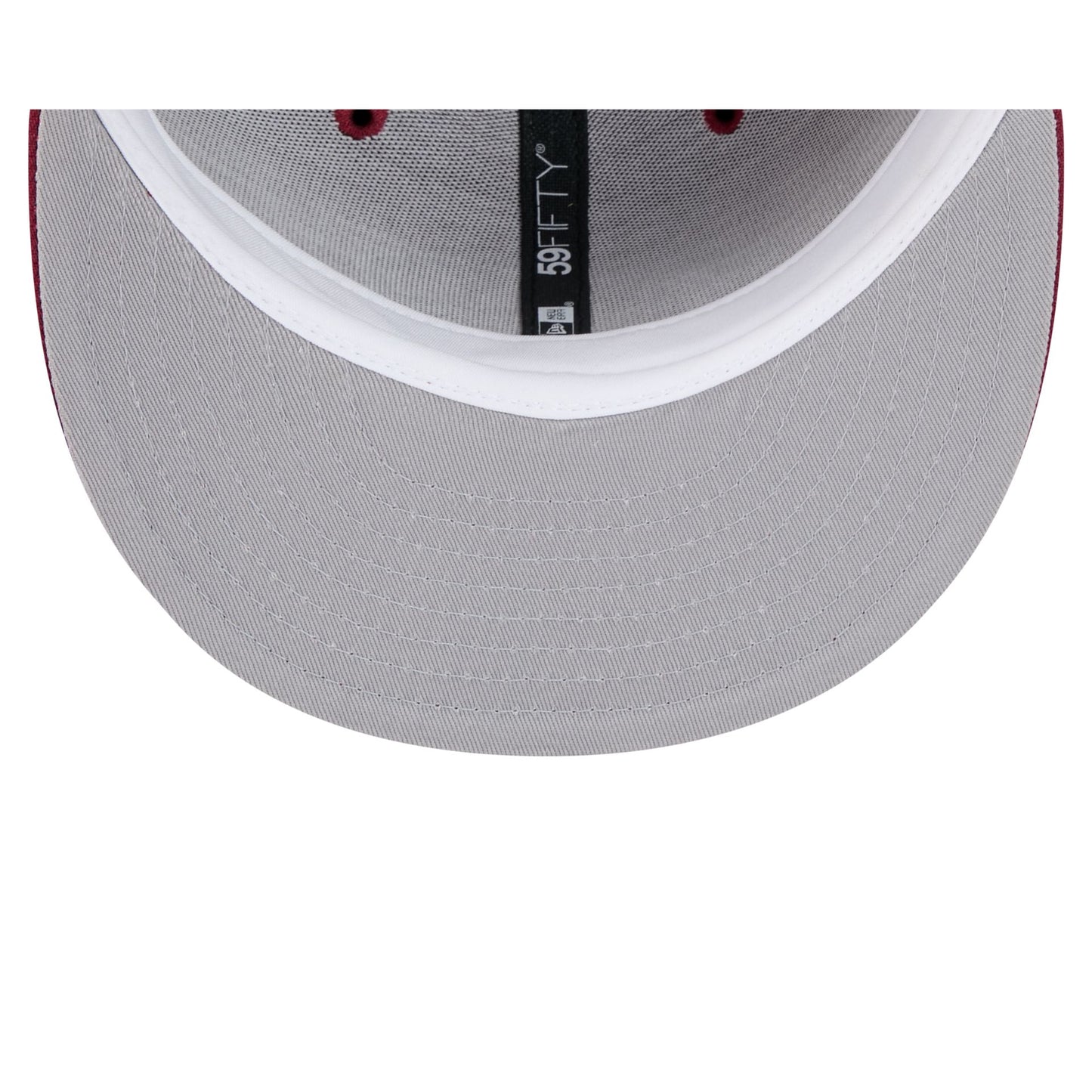 The Colorado Avalanche 59FIFTY Fitted Cap features an embroidered Avalanche logo at the front panels with a matching team wordmark at the rear and a gray undervisor.